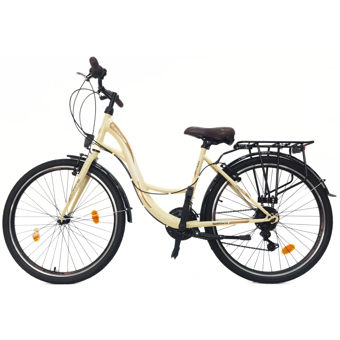 👌 Opony w rozmiarze 26" x 1,75" zapewniają komfortową jazdę zarówno po asfalcie, jak i drogach szutrowych. Dodatkowo, model ten wyposażony jest w odblaski, które zwiększają widoczność rowerzysty, co wpływa bezpośrednio na bezpieczeństwo jazdy. Bagażnik umożliwia przewożenie drobnych rzeczy, a światła zapewniają doskonałą widoczność w warunkach nocnych.