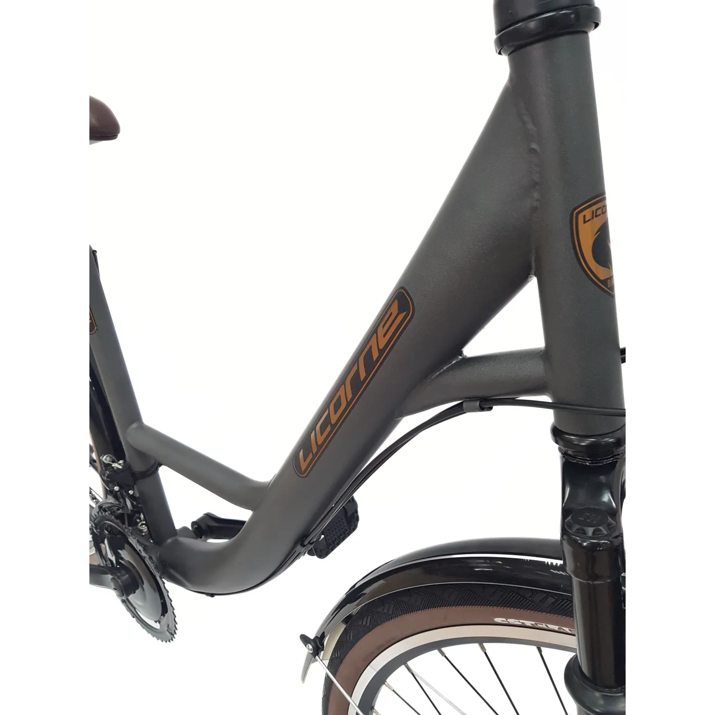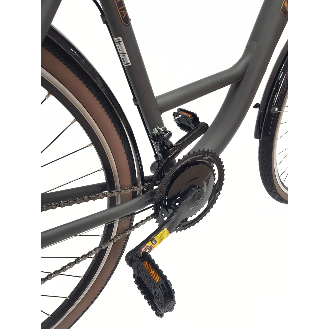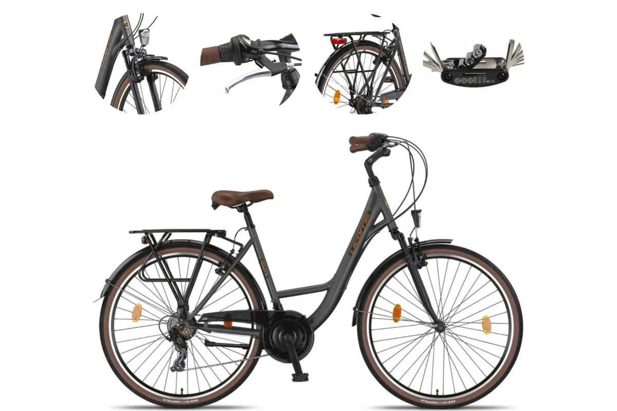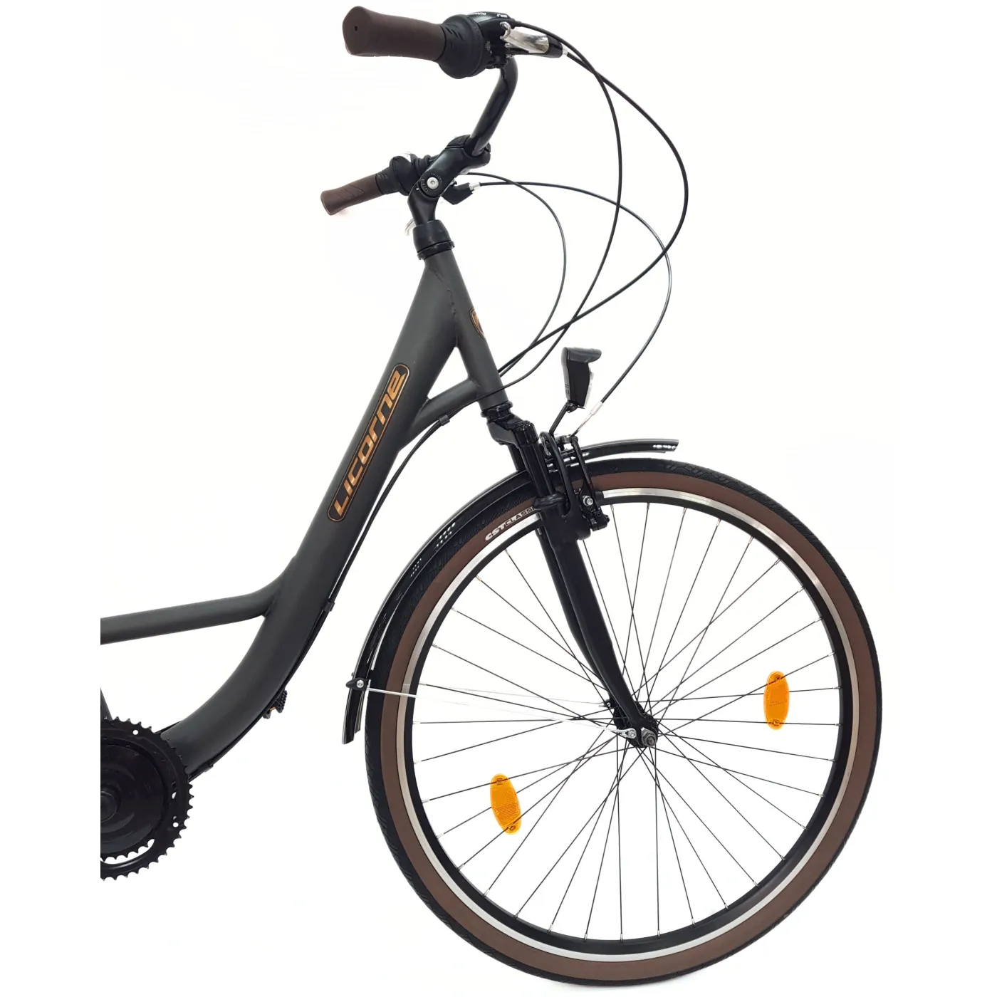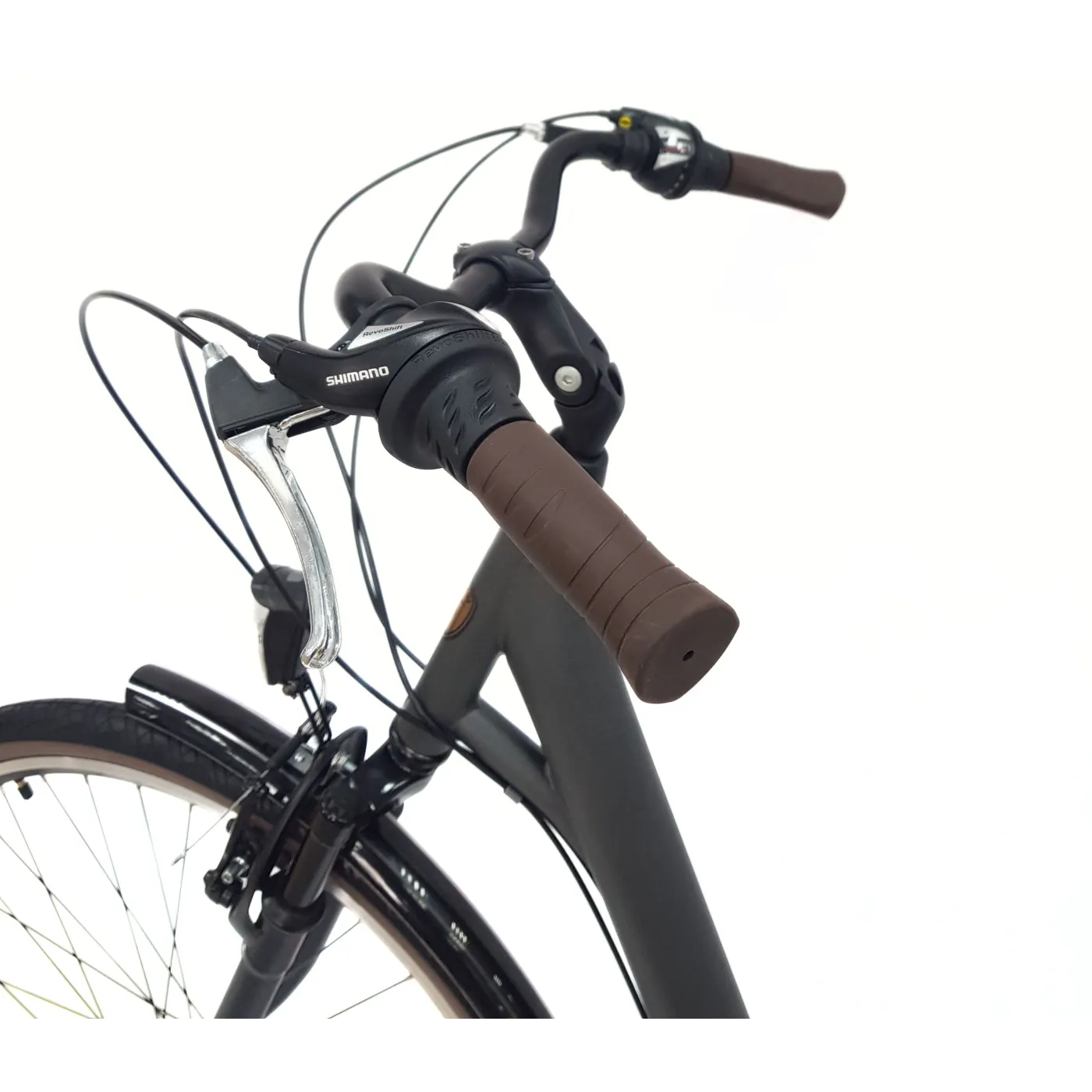 👍🏼 Rower Violetta wyposażony jest w stalową ramę, która gwarantuje stabilność i wytrzymałość. Dzięki temu idealnie sprawdzi się podczas codziennych dojazdów do pracy czy szkoły. Klasyczny design w kolorze antracytowym z brązowymi elementami nadaje mu elegancki wygląd.