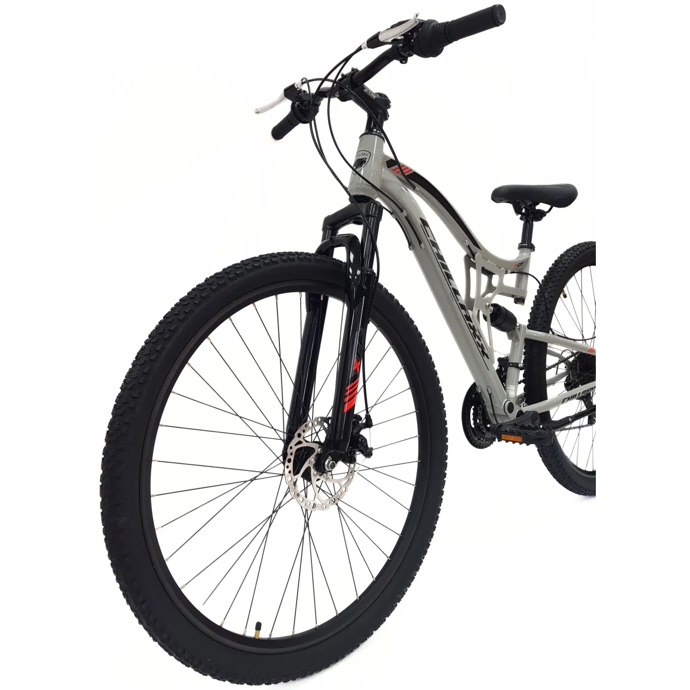 👌 Opony o rozmiarze 29" x 2,10" oferują doskonałą przyczepność i stabilność na każdym podłożu, a pełna amortyzacja zarówno z przodu, jak i z tyłu sprawia, że jazda jest komfortowa nawet na wyboistym podłożu. Dzięki temu modelowi można cieszyć się pełną kontrolą nad swoją jazdą, bez obaw o wstrząsy i drgania.