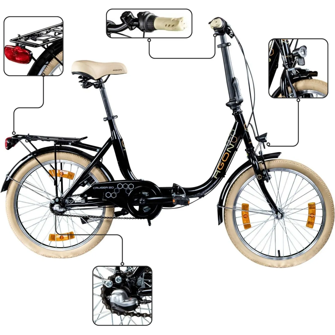 Szukasz praktycznego roweru, który łatwo przechowasz, przewieziesz i dopasujesz do swoich potrzeb? Agon Cruiser to solidny, składany rower miejski zaprojektowany z myślą o codziennym użytkowaniu. Stalowa konstrukcja, kompaktowe koła 20" oraz kompletne wyposażenie – w tym oświetlenie zasilane dynamem – sprawiają, że rower jest gotowy do jazdy od razu po rozłożeniu.