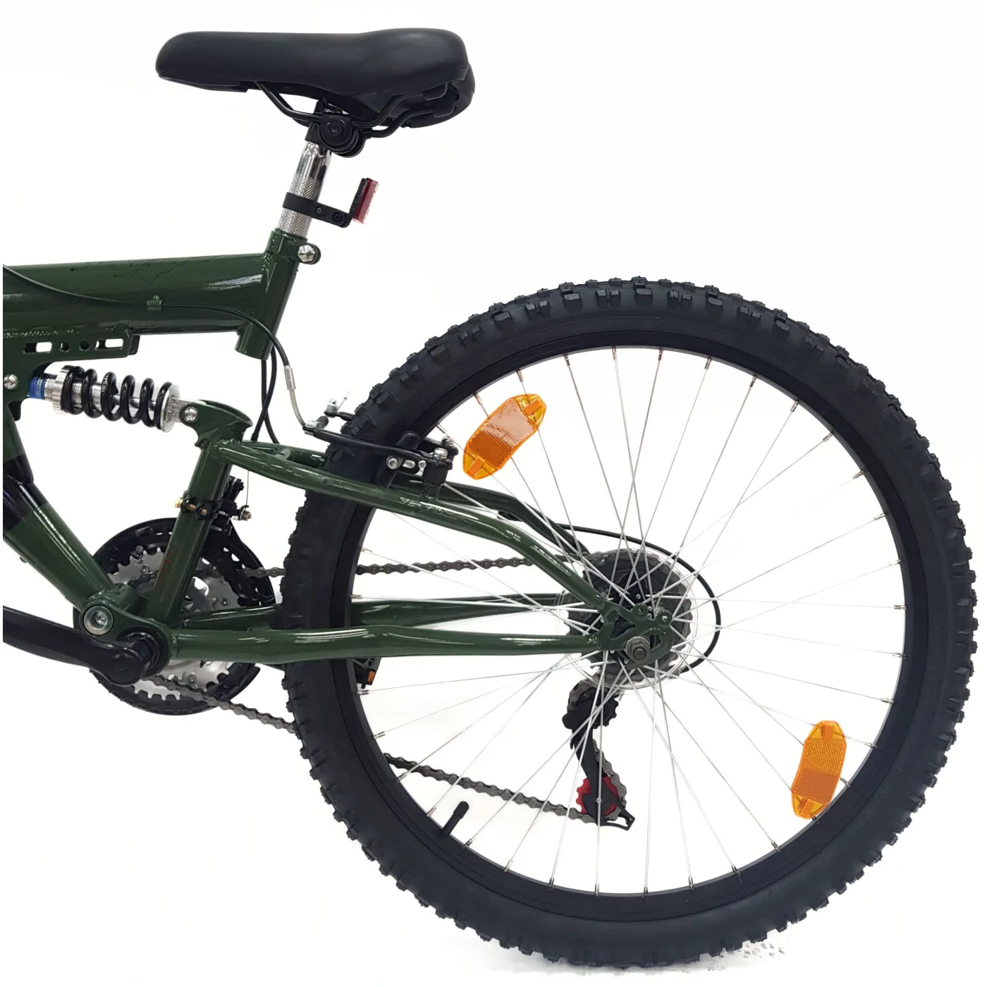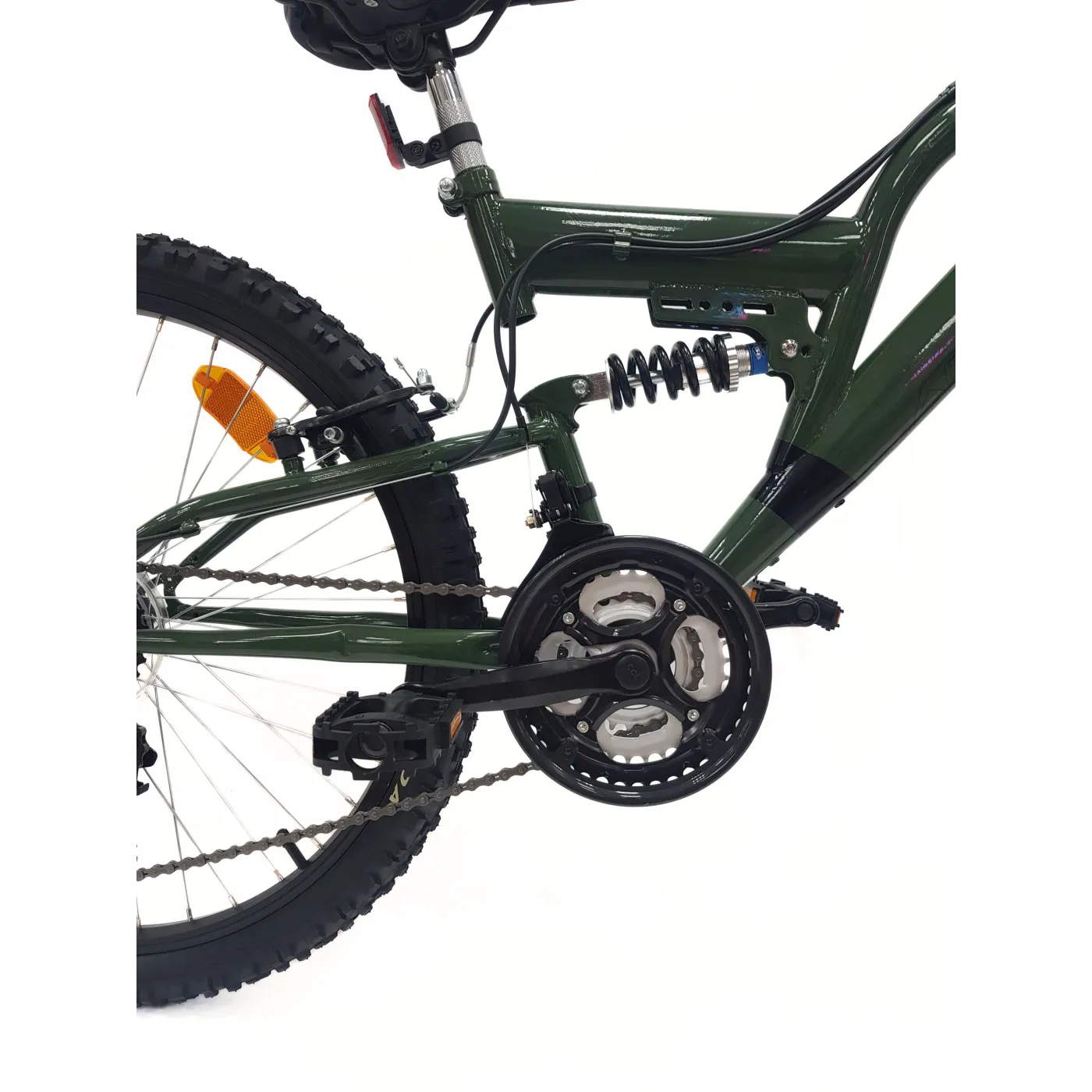 👉 Pełna amortyzacja zapewnia komfortowe i stabilne pokonywanie nierówności terenu, co sprawia, że nawet trudniejsze trasy stają się przyjemne. Dzięki 18-biegowej przerzutce Shimano oraz manetkom obrotowym Microshift, rower gwarantuje płynne i precyzyjne zmiany biegów, dostosowane do warunków terenowych.