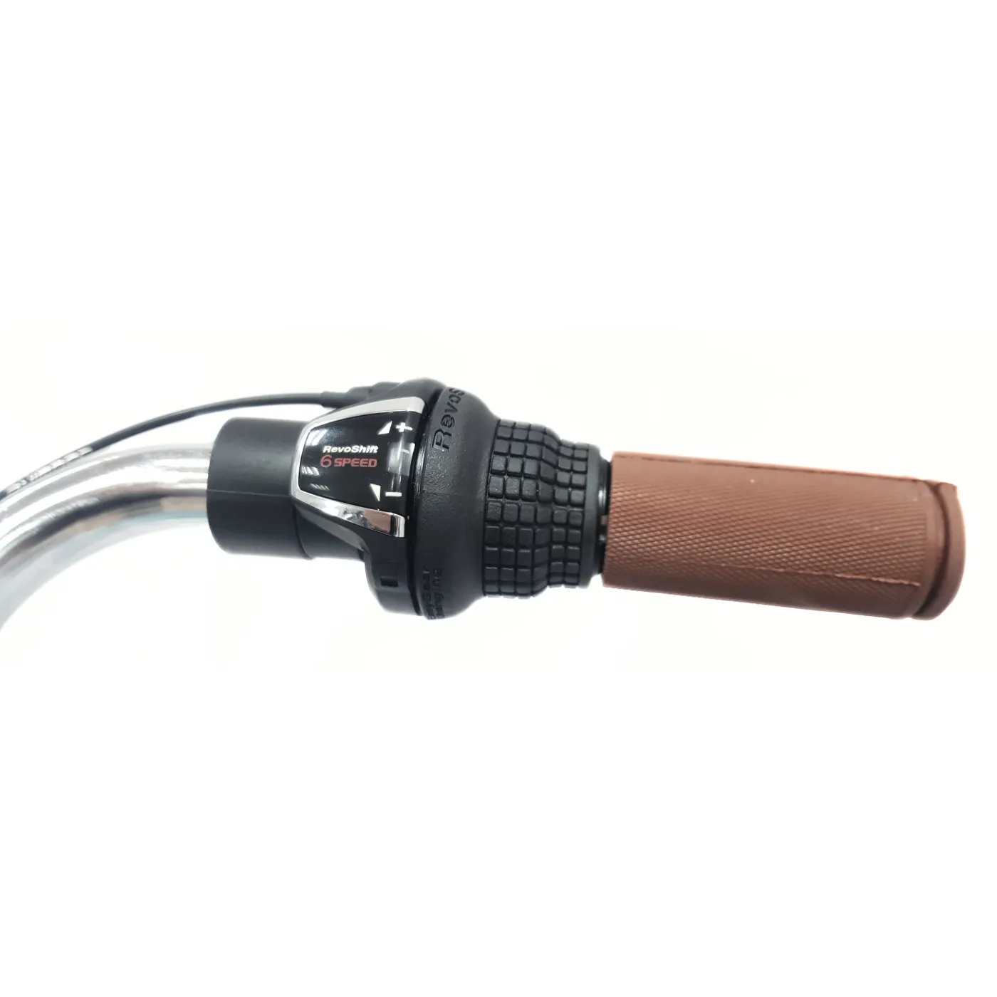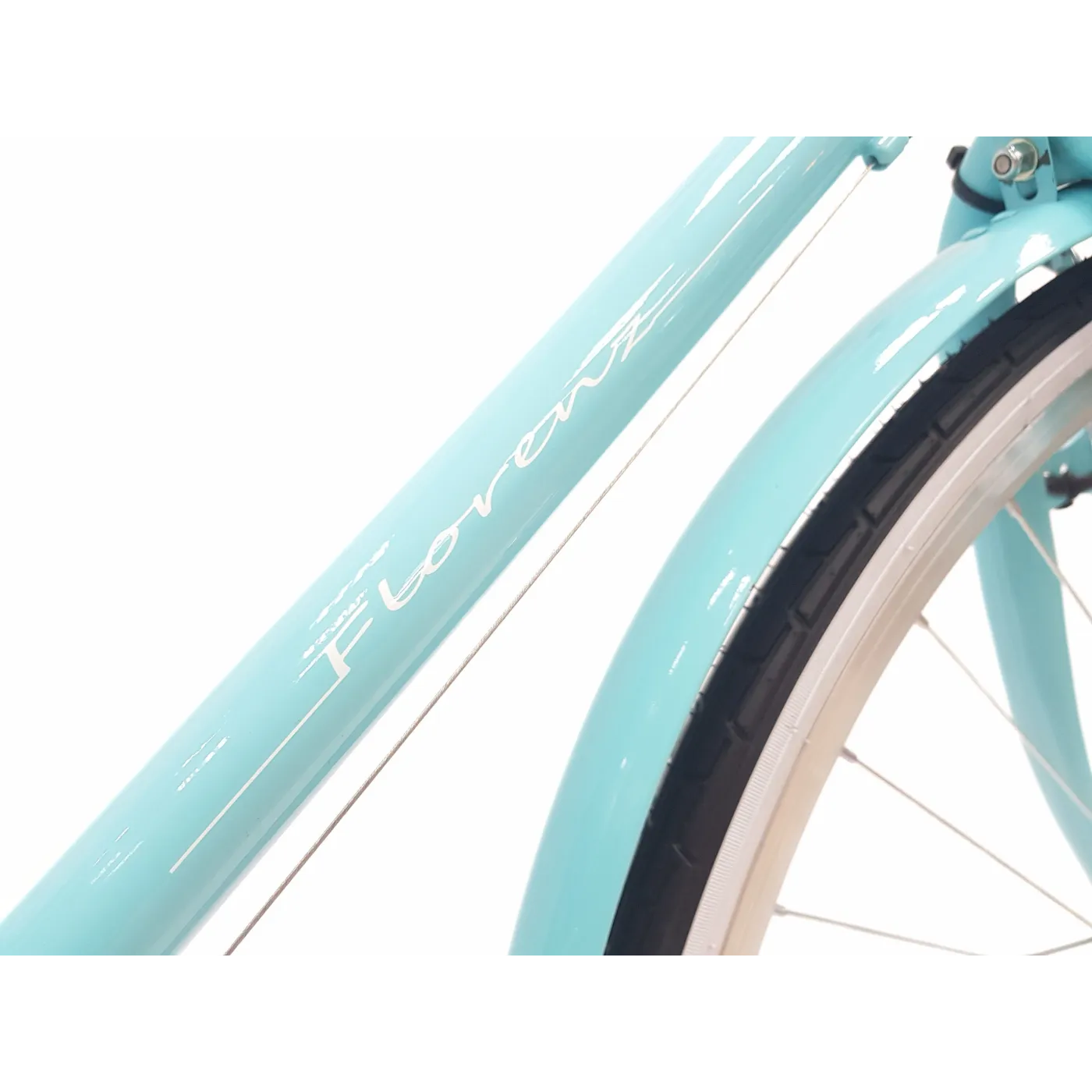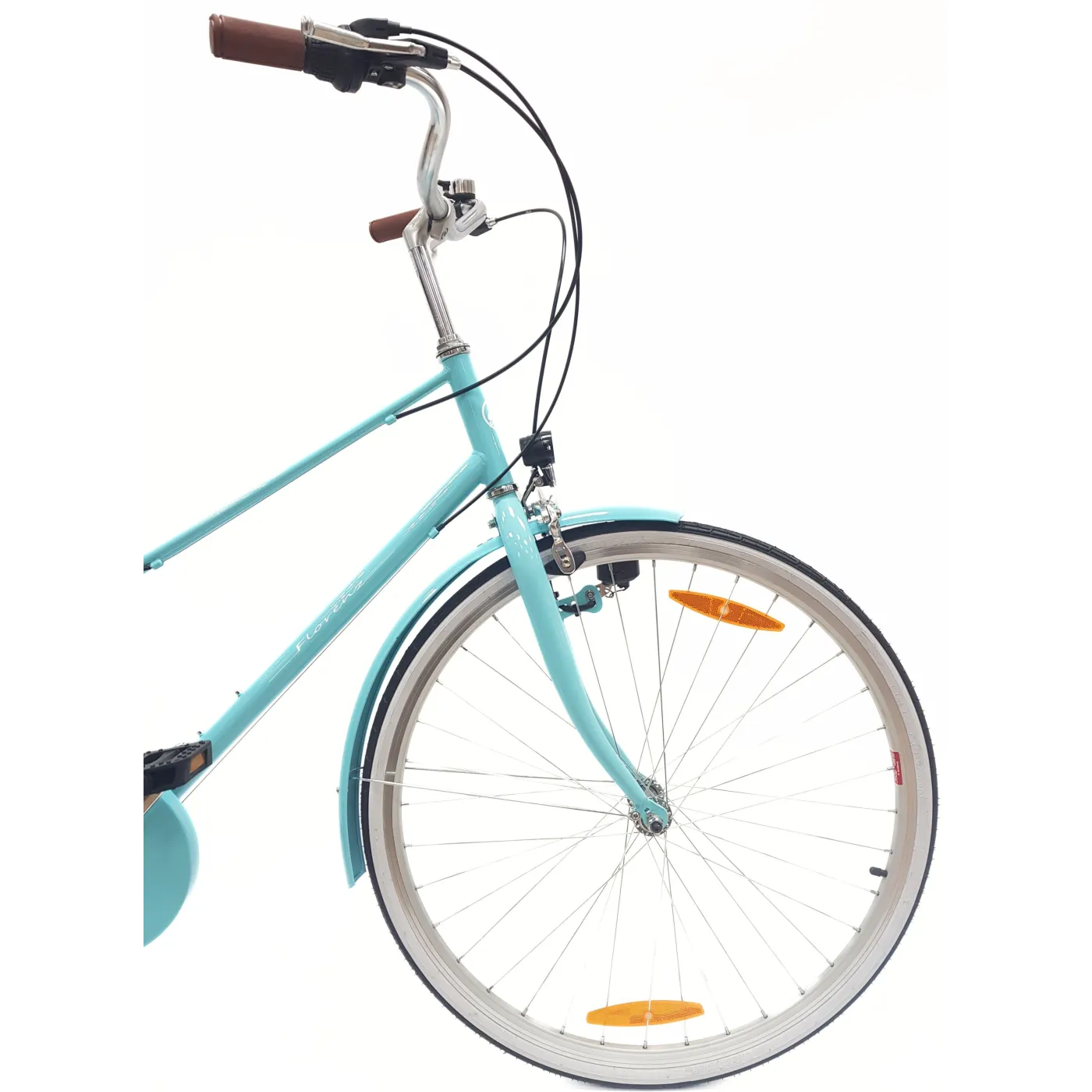 😎 Dzięki 6-biegowym przełożeniom, Florence zawsze będzie łatwo poruszać się w codziennym życiu. Po prawidłowym ustawieniu komponenty zapewniają płynne i niewymagające konserwacji operacje przełączania przez długi czas. Przełącznik z uchwytem obrotowym jest łatwy w obsłudze. Rower jest hamowany za pomocą hamulców zaciskowych na obu kołach.