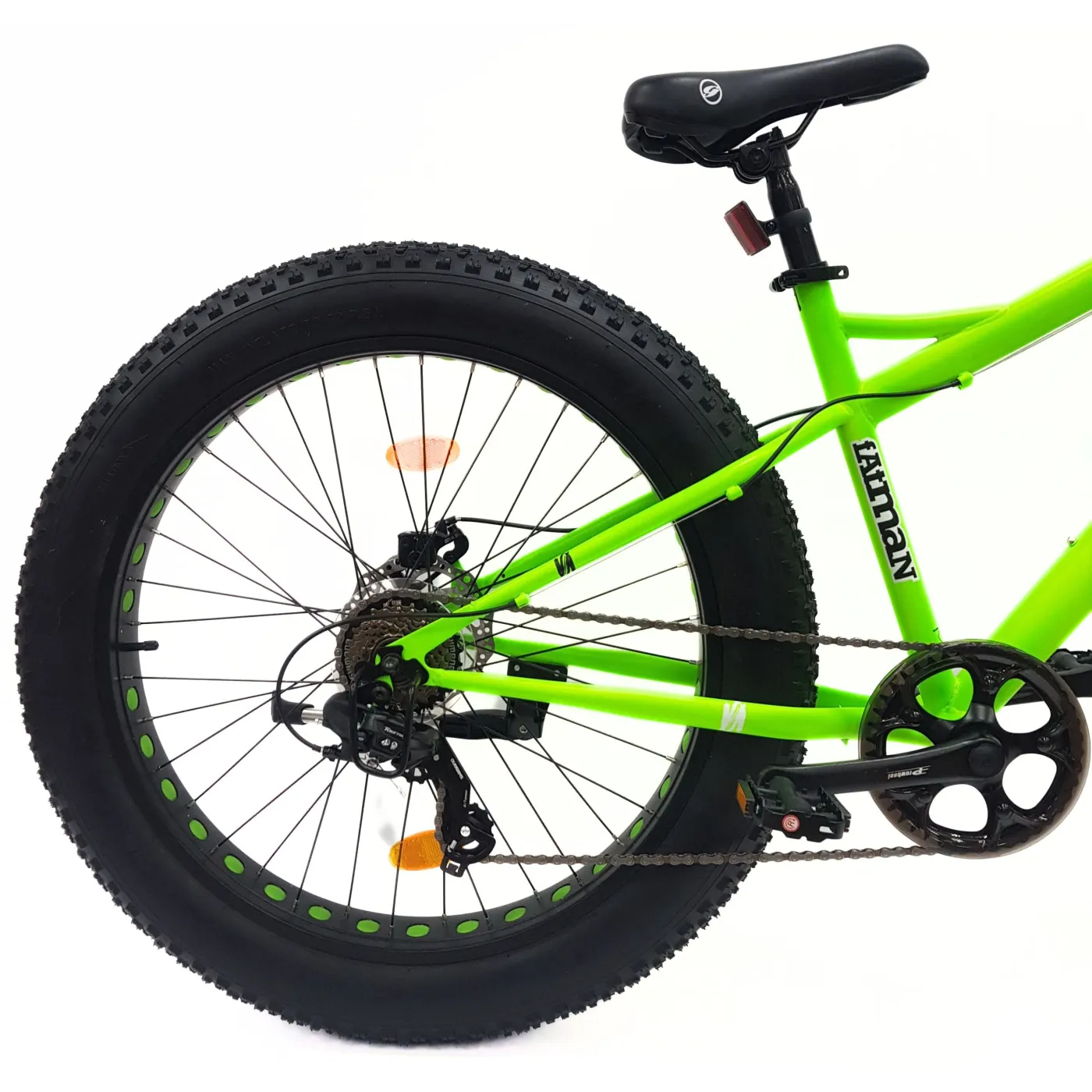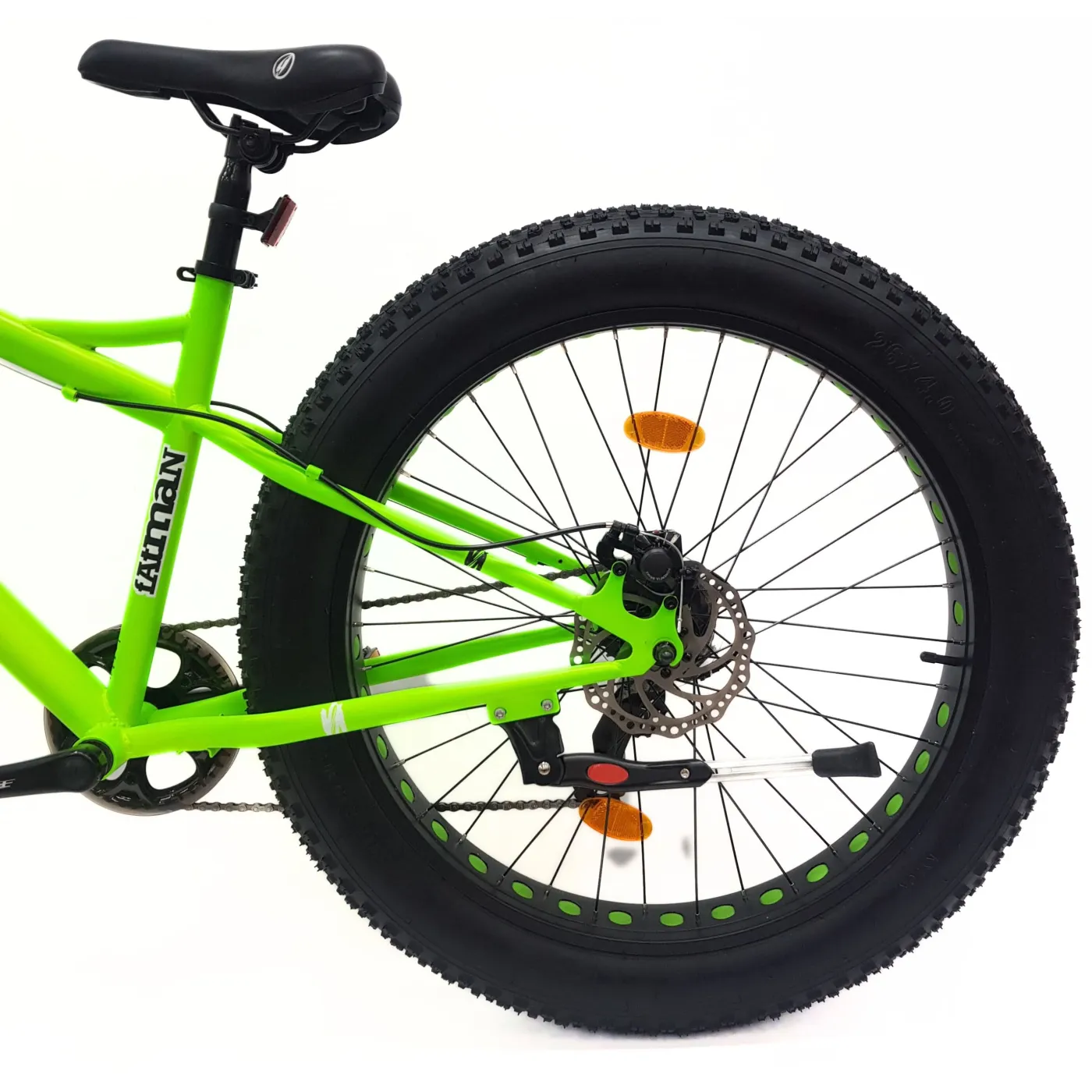 🌳 Opony o rozmiarze 26 x 4.0 zapewniają przyczepność i stabilność podczas jazdy, natomiast brak amortyzacji pozwala na pełną kontrolę nad rowerem.