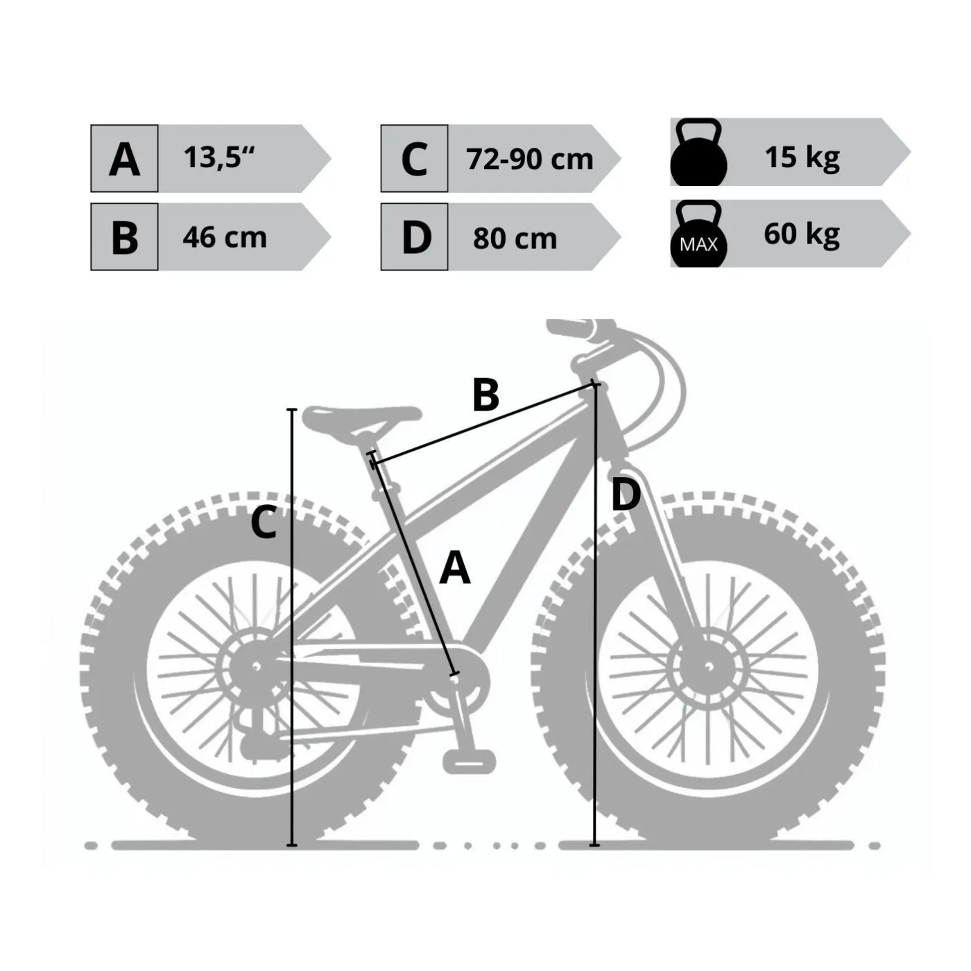 💨 Szerokie opony o rozmiarze 20" x 4,0" zapewniają doskonałą przyczepność oraz stabilność podczas jazdy po nierównych nawierzchniach. Mimo braku amortyzacji model ten radzi sobie świetnie dzięki szerokim i wysokim oponom, które gwarantują odpowiednie tłumienie nierówności.