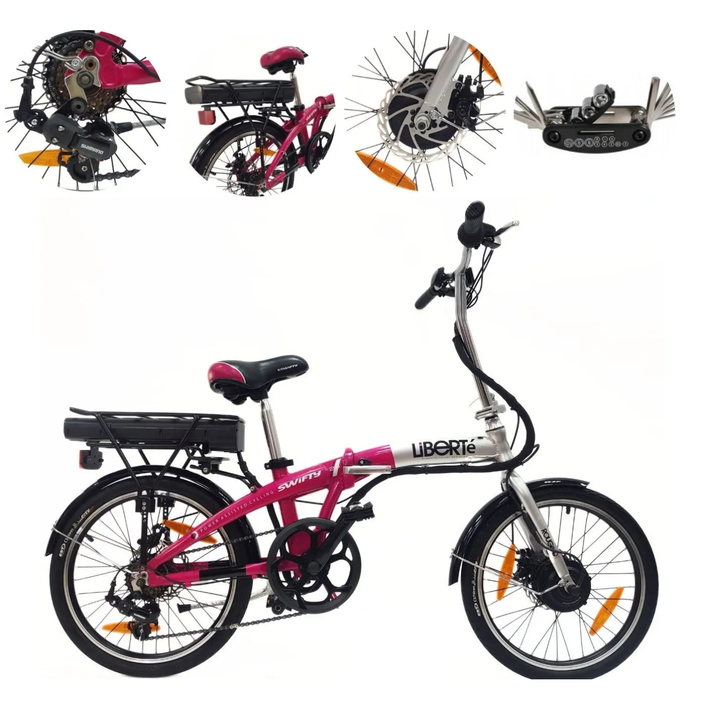 💎 Swifty Liberte to doskonałe rozwiązanie dla osób poszukujących wygodnego i ekologicznego środka transportu. Ten składany model charakteryzuje się solidną ramą wykonaną z aluminium, co gwarantuje lekkość i trwałość konstrukcji. Hamulce tarczowe zapewniają skuteczne i bezpieczne zatrzymywanie się, dzięki czemu jazda jest płynna i komfortowa.