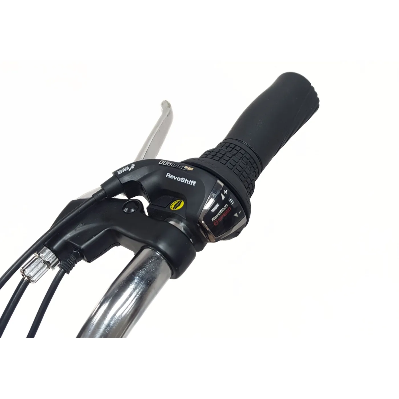 ✨ 6-biegowa przerzutka Shimano Tourney oraz manetka obrotowa Revoshift pozwalają na łatwe dostosowanie prędkości do warunków na drodze. Silnik o mocy 250 W wspomaga pedałowanie, co sprawia, że podróżowanie staje się jeszcze bardziej komfortowe.
