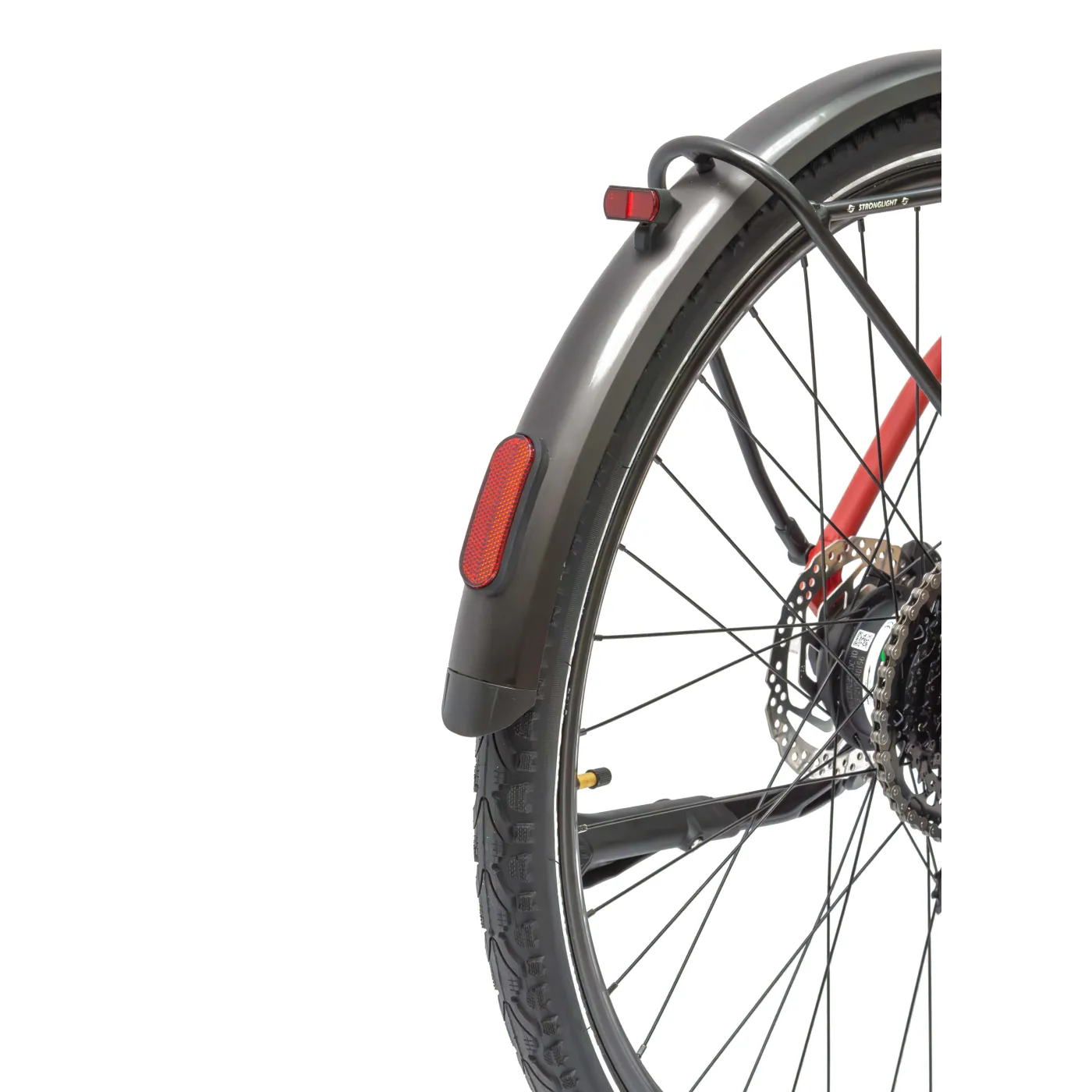 💡 Dodatkowe wyposażenie takie jak dzwonek, stopka oraz oświetlenie w znaczący sposób podnosi funkcjonalność roweru. Z kolei maksymalne obciążenie wynoszące aż do 120 kg , sprawia że jest on odpowiedni dla szerokiego grona użytkowników. Model ten jest wyposażony w bezszczotkowy silnik marki BAFANG i pozwala jechać z prędkością aż do 25 km/h.