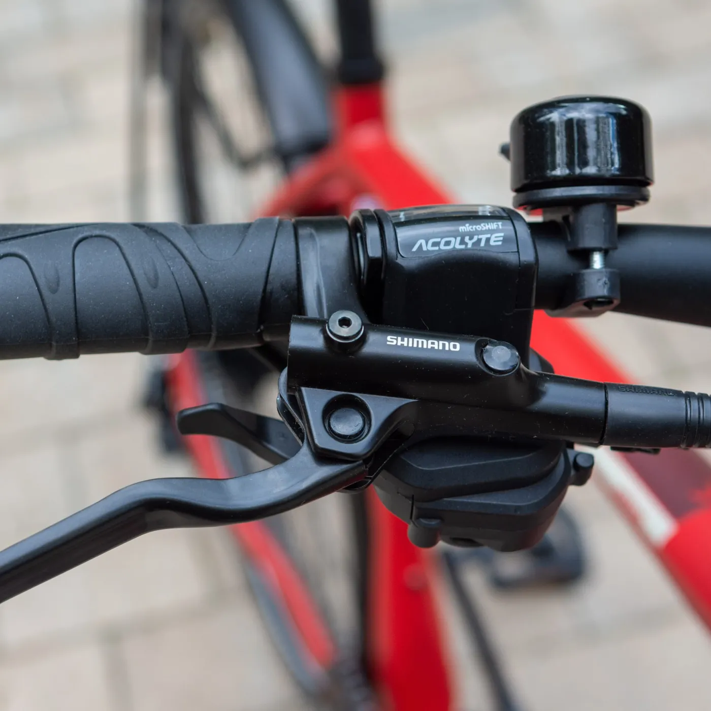 Elektryczny rower HEAD eUrban Neo został wyposażony w nowoczesną manetkę Rapidfire Acolyte, która umożliwia szybką i precyzyjną zmianę przełożeń bez konieczności odrywania dłoni od kierownicy.