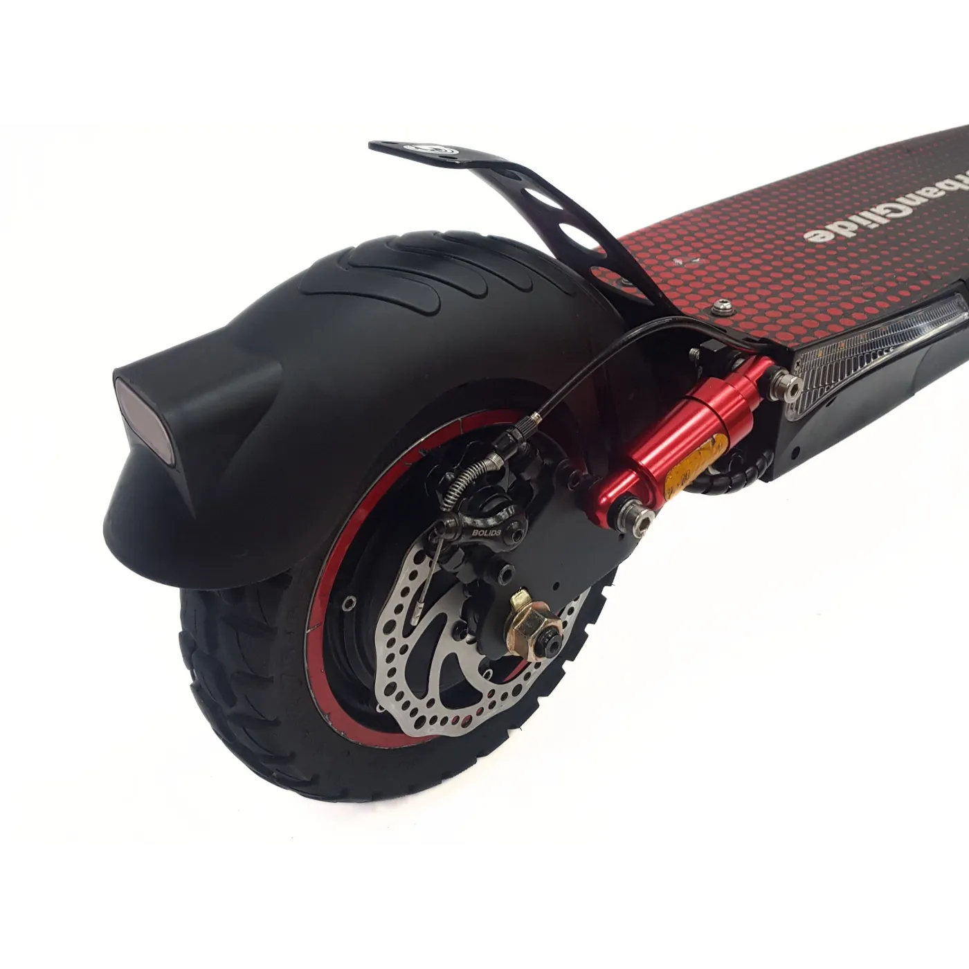 🛴 Hulajnoga została wyposażona w 10-calowe opony pneumatyczne oraz amortyzację, co zapewnia stabilność i komfort jazdy nawet po nierównych nawierzchniach. Dodatkowo, dwa hamulce tarczowe pozwalają na bezpieczne zatrzymanie się w każdej sytuacji.