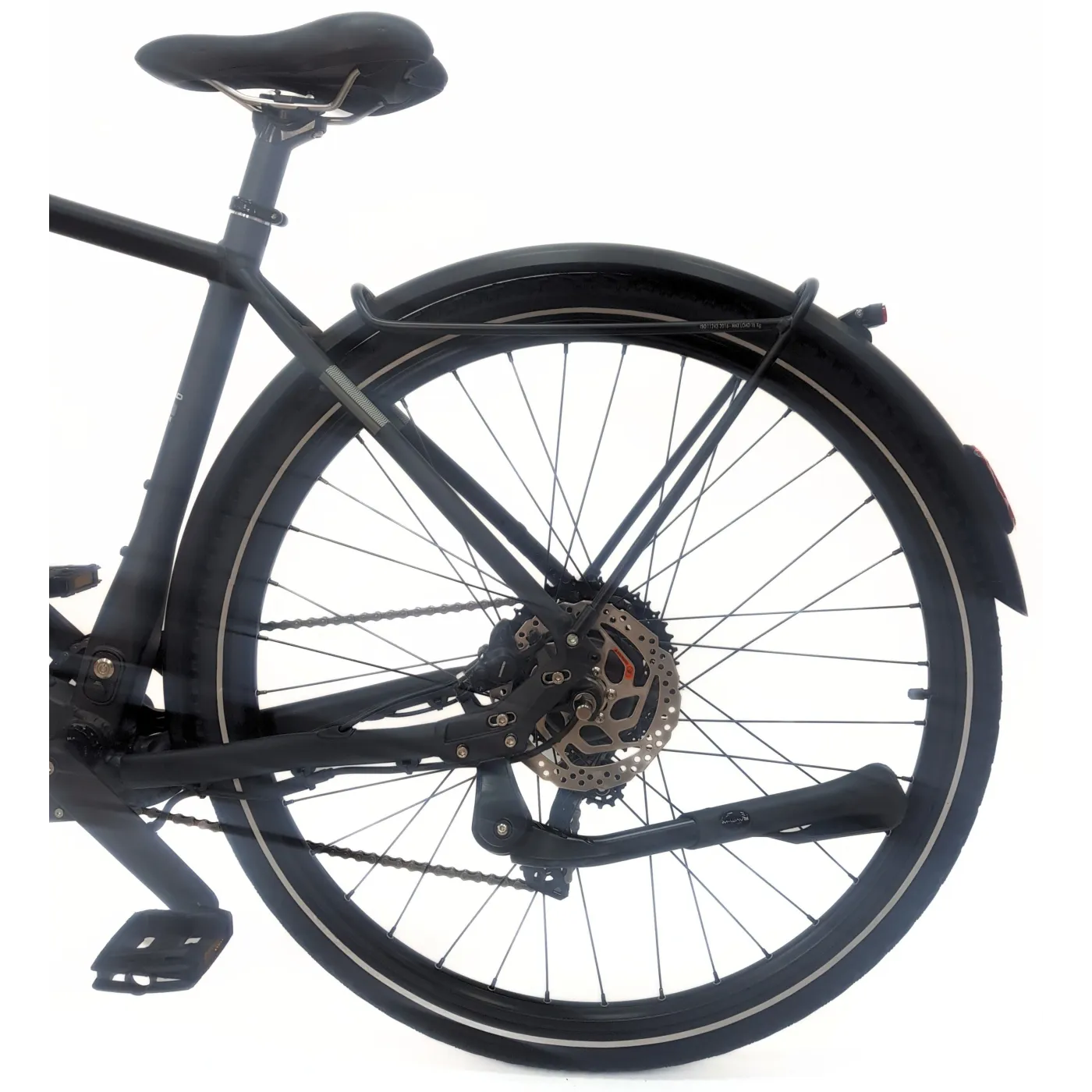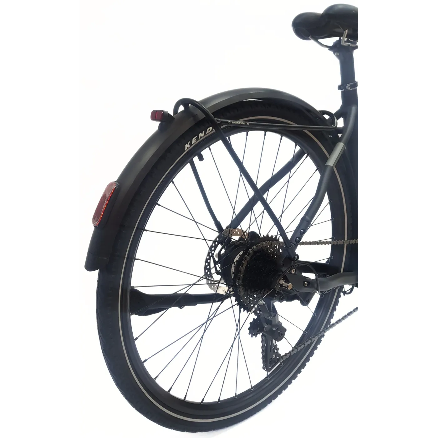 💡 Dodatkowe wyposażenie takie jak dzwonek, stopka oraz oświetlenie w znaczący sposób podnosi funkcjonalność roweru. Z kolei maksymalne obciążenie wynoszące aż do 120 kg , sprawia że jest on odpowiedni dla szerokiego grona użytkowników. Model ten jest wyposażony w bezszczotkowy silnik marki BAFANG i pozwala jechać z prędkością aż do 25 km/h.