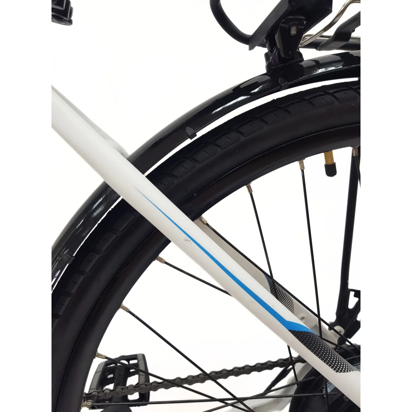👌 Amortyzowany widelec oraz opony 28" x 1,6" zapewniają wygodę podczas jazdy po nierównych drogach, absorbując wstrząsy i zapewniając stabilność. Dodatkowo rower wyposażony został w światła, bagażnik, błotniki, co sprawia, że jest gotowy do wypraw w każde warunki pogodowe.