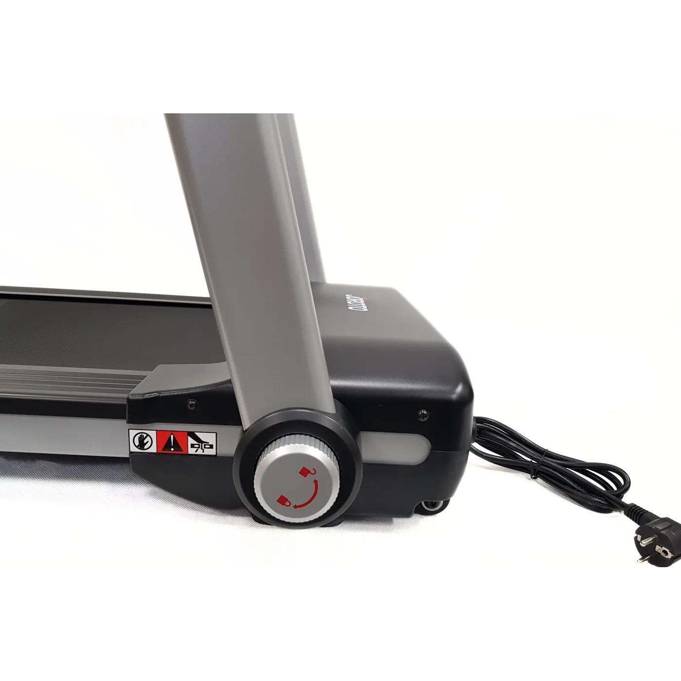 📏 Z myślą o Twoim komforcie bieżnia została zaprojektowana z pasem o długości 120 cm, co zapewnia swobodę ruchów podczas biegu. Dodatkowo, jej konstrukcja umożliwia składanie urządzenia po zakończonym treningu – zmieści się nawet pod łóżkiem!