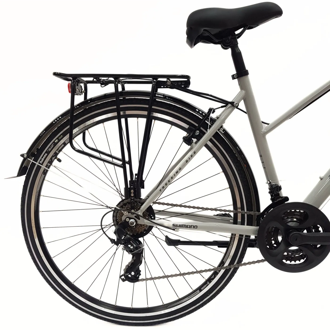 👌 Opony w rozmiarze 28" x 1,5" zapewniają stabilność i doskonałą przyczepność zarówno na suchym, jak i mokrym asfalcie. Amortyzowany widelec absorbujący wstrząsy pomaga zniwelować nierówności terenu, co znacznie zwiększa komfort jazdy. Dodatkowo, bagażnik umożliwia przewożenie potrzebnych rzeczy w podróży, a dzwonek oraz światła zwiększają Twoje bezpieczeństwo na drodze.