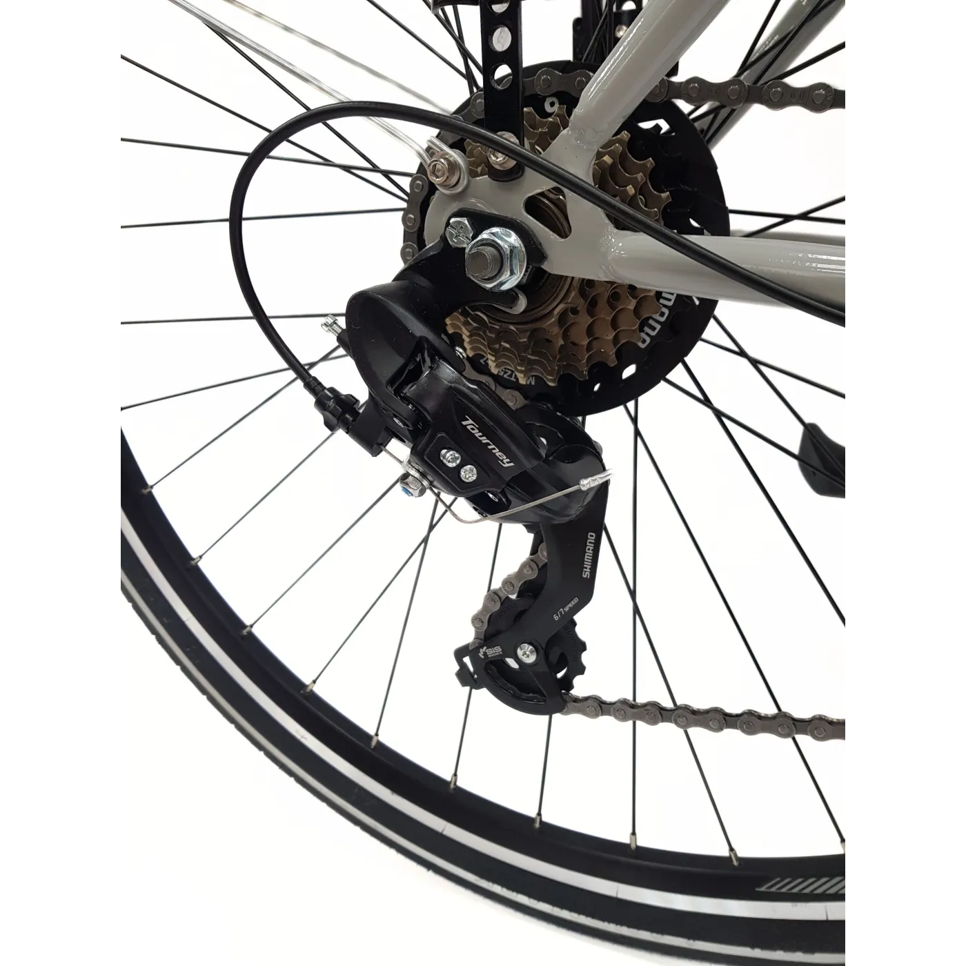 ✔️ Hamulce V-brake gwarantują skuteczne i pewne zatrzymywanie roweru w każdych warunkach. 21-biegowa przerzutka Shimano oraz manetki cynglowe pozwalają łatwo dostosować tempo jazdy do terenu i swoich preferencji. Dzięki nim możesz płynnie zmieniać prędkość i pokonywać zarówno strome podjazdy, jak i zjeżdżać z górek na dużych prędkościach.