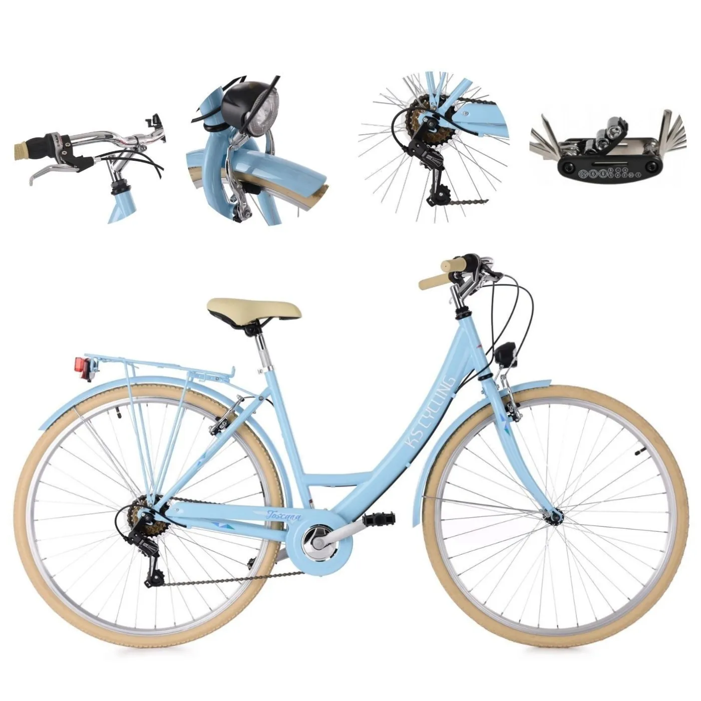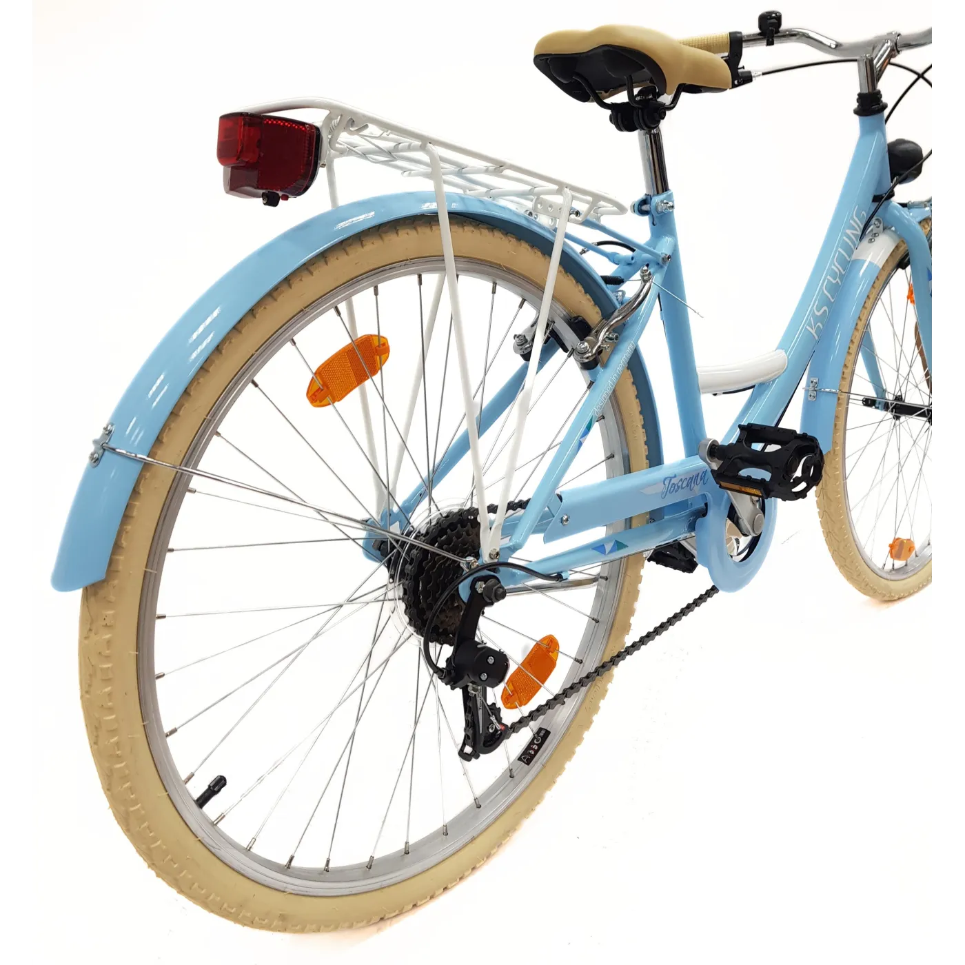 ✨ Rower został także wyposażony w światła, dzwonek oraz odblaski na kołach, co zapewnia dodatkowe bezpieczeństwo podczas jazdy po zmroku. Stopka ułatwia parkowanie i przechowywanie roweru w dowolnym miejscu. To wyjątkowe połączenie stylu, funkcjonalności i bezpieczeństwa sprawia, że Toscana to idealny towarzysz na co dzień dla każdej kobiety.