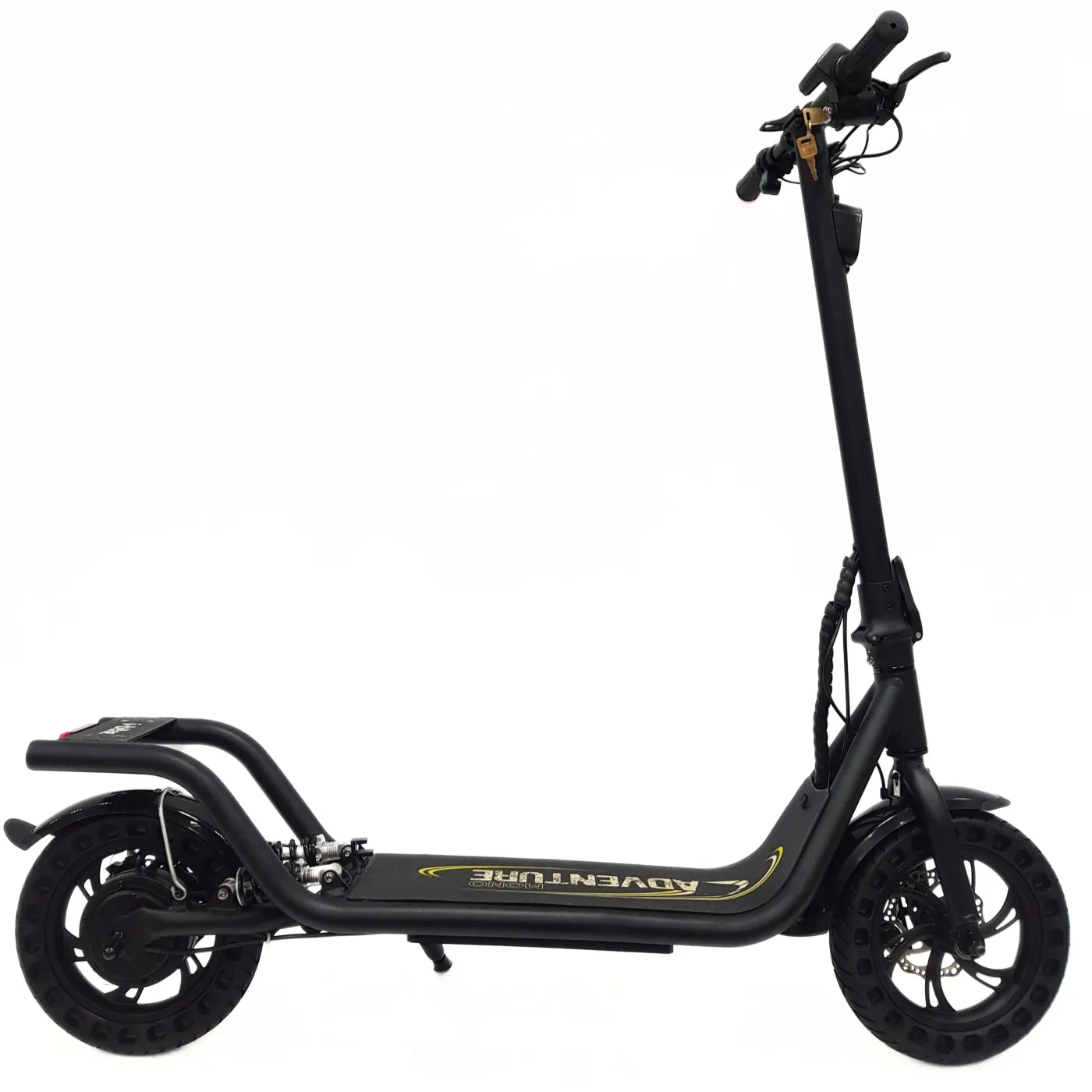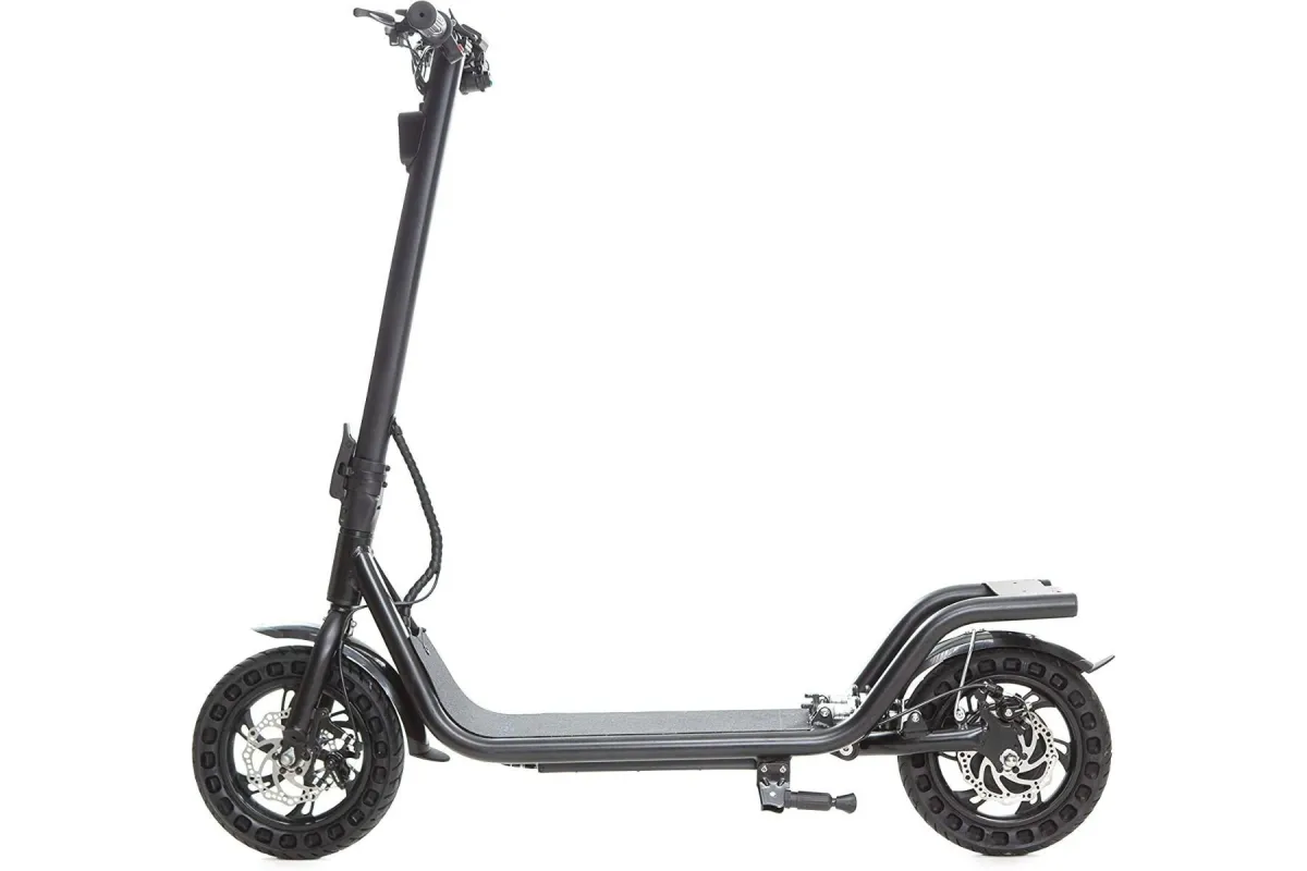 🛴 Hulajnoga została wyposażona w 12-calowe opony bezdętkowe, które zapewniają stabilność i komfort jazdy nawet po nierównych nawierzchniach. Dodatkowo, hamulce tarczowe pozwalają na bezpieczne zatrzymanie się w każdej sytuacji.