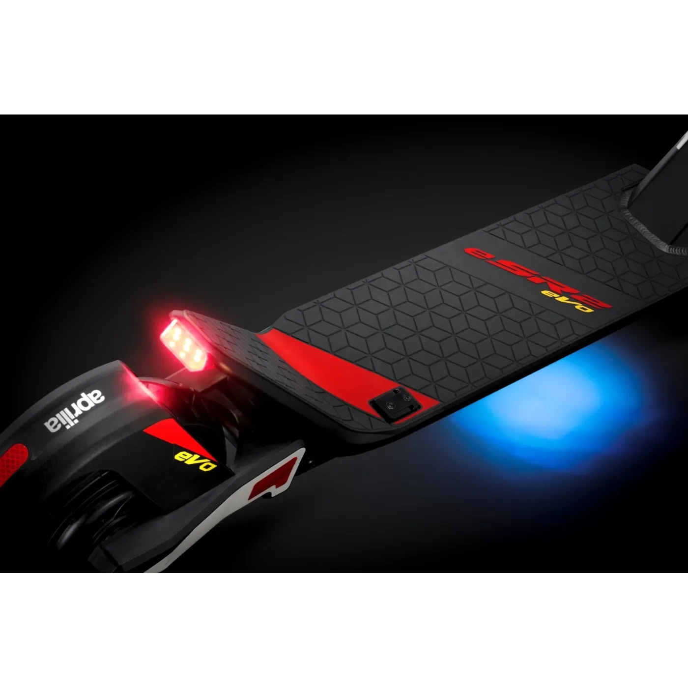 💡 Bezpieczeństwo to priorytet! Aprilia E-SR2 Evo ma wbudowane oświetlenie LED zarówno z przodu, jak i z tyłu, gwarantując świetną widoczność po zmroku. Wyposażona w wyświetlacz informujący o statusie baterii, przebiegu, prędkości, wybranym trybie jazdy, pozwala na monitorowanie najważniejszych parametrów jazdy.