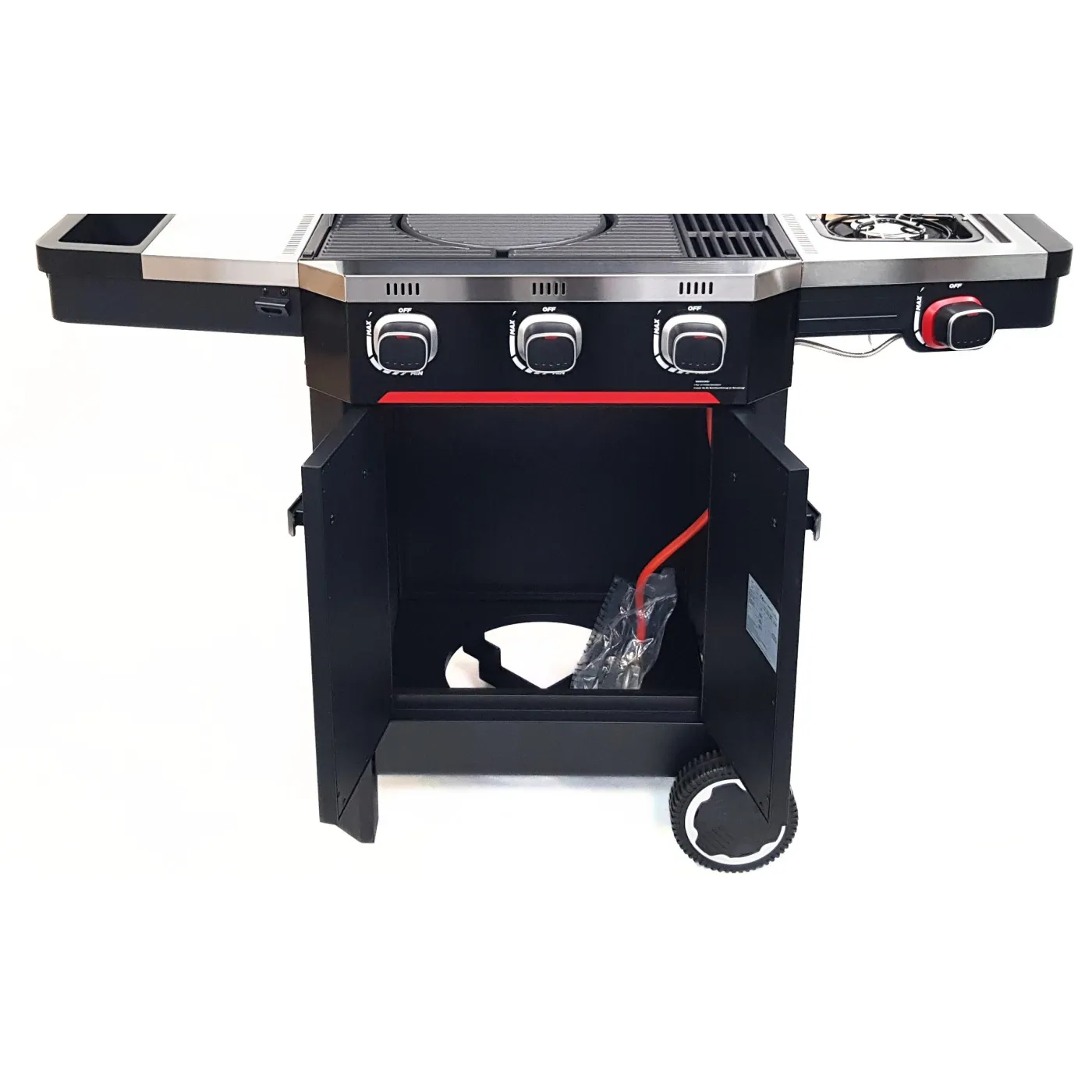 Ale wygląd to dopiero początek. Trzy wysokiej jakości palniki ze stali nierdzewnej oraz dodatkowy palnik boczny zapewniają imponującą moc grzewczą aż 13,2 kW, gwarantując równomierne rozprowadzenie ciepła i idealne efekty grillowania —niezależnie od tego, czy przygotowujesz soczyste steki, aromatyczne warzywa czy delikatne ryby.