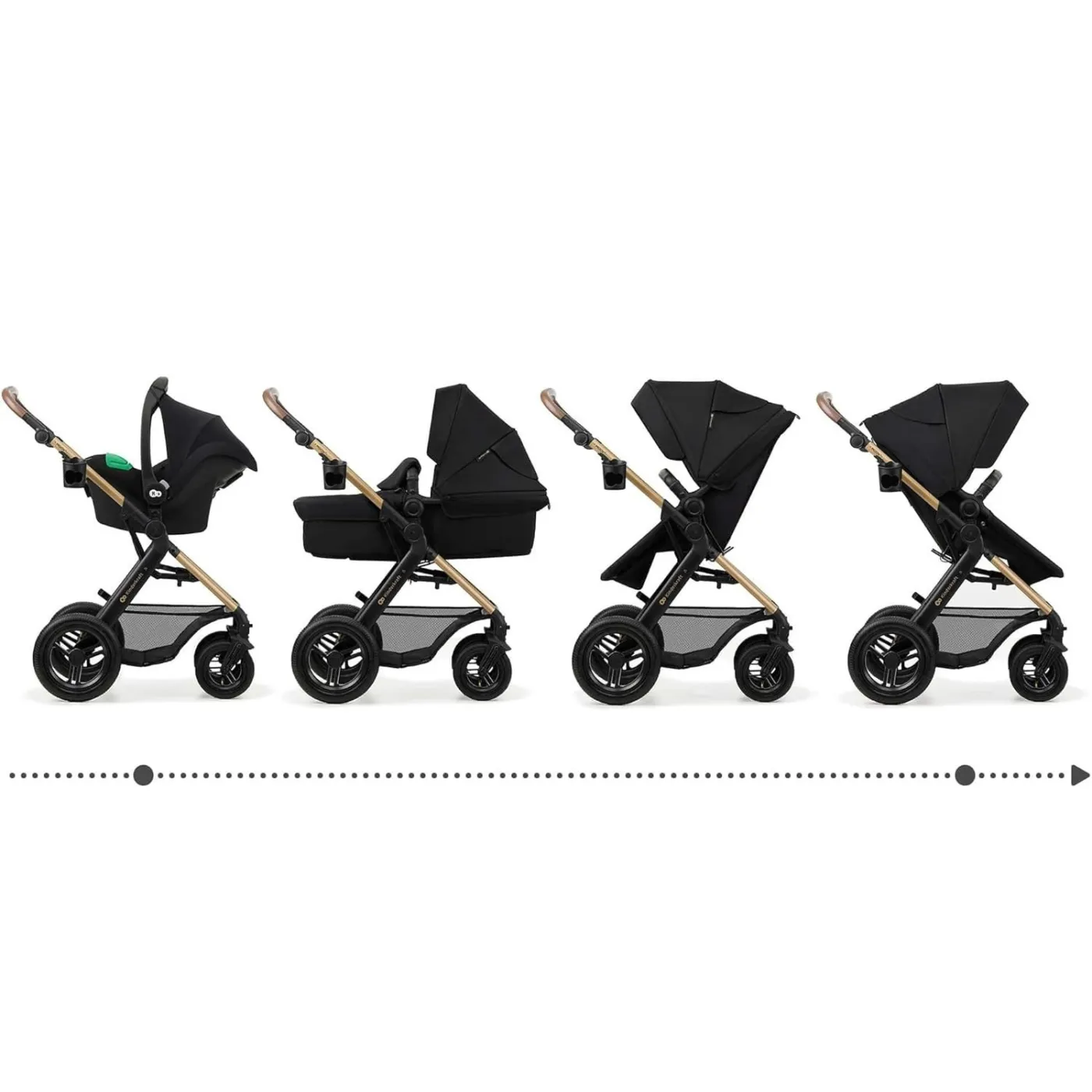 - Wózek od urodzenia do 27 kg: maksymalna waga dziecka do 22 kg, obciążenie kosza: 5 kg