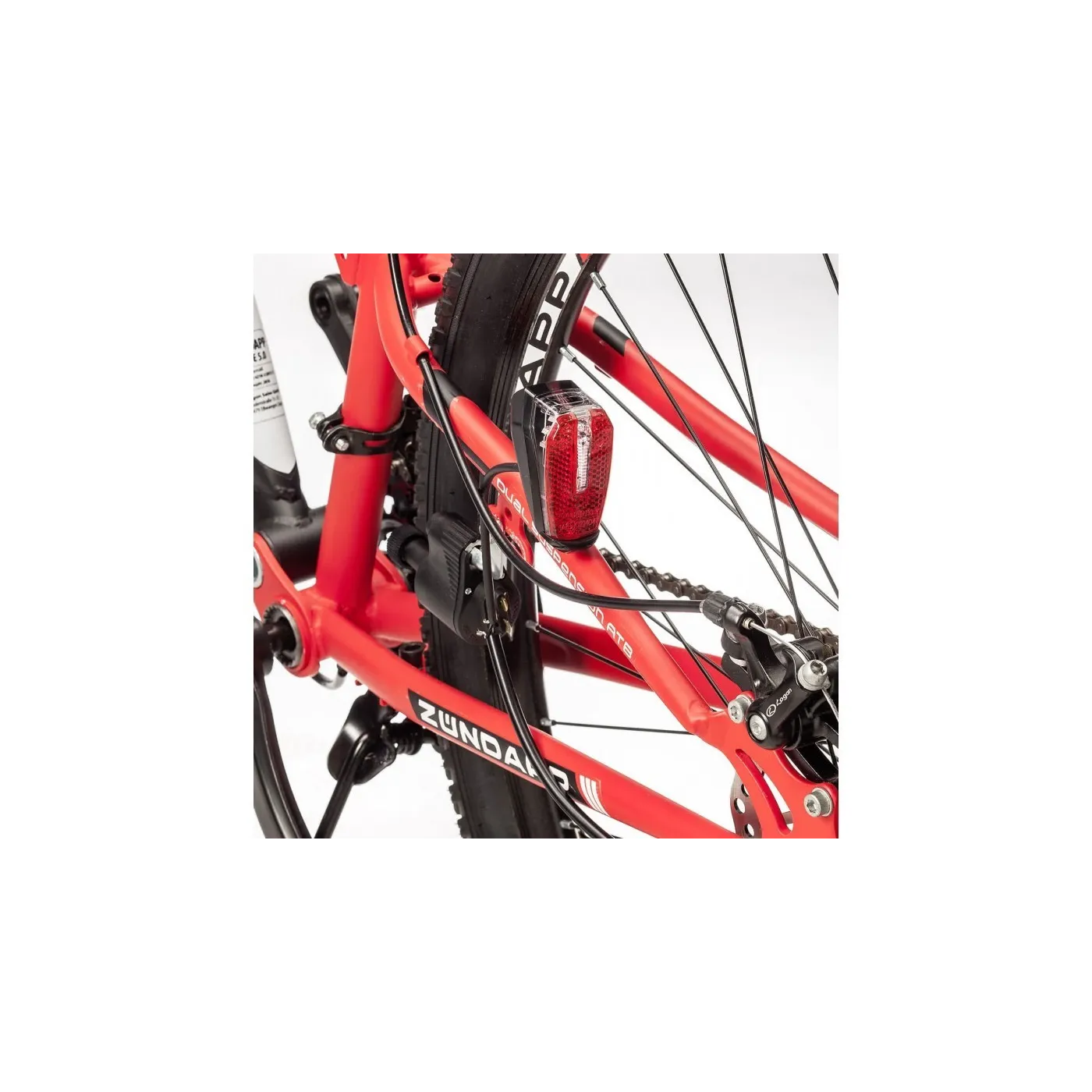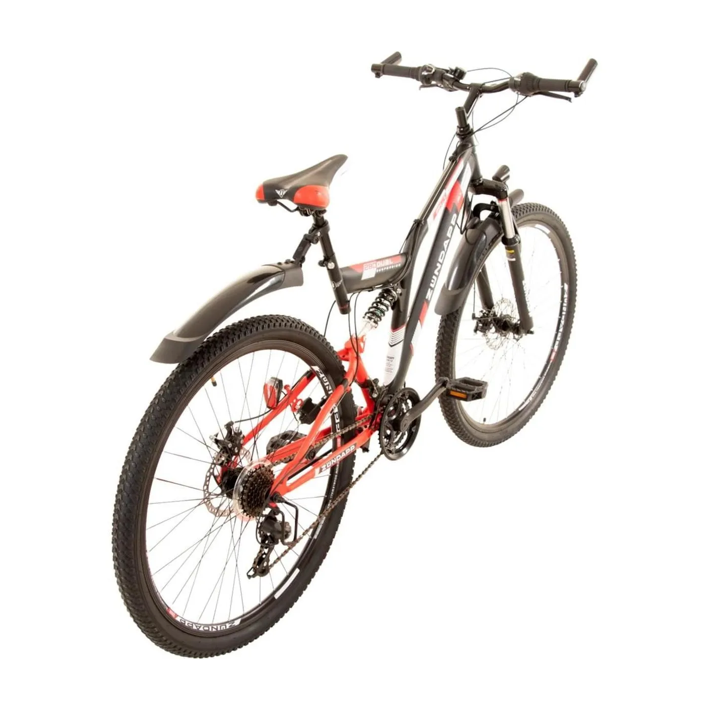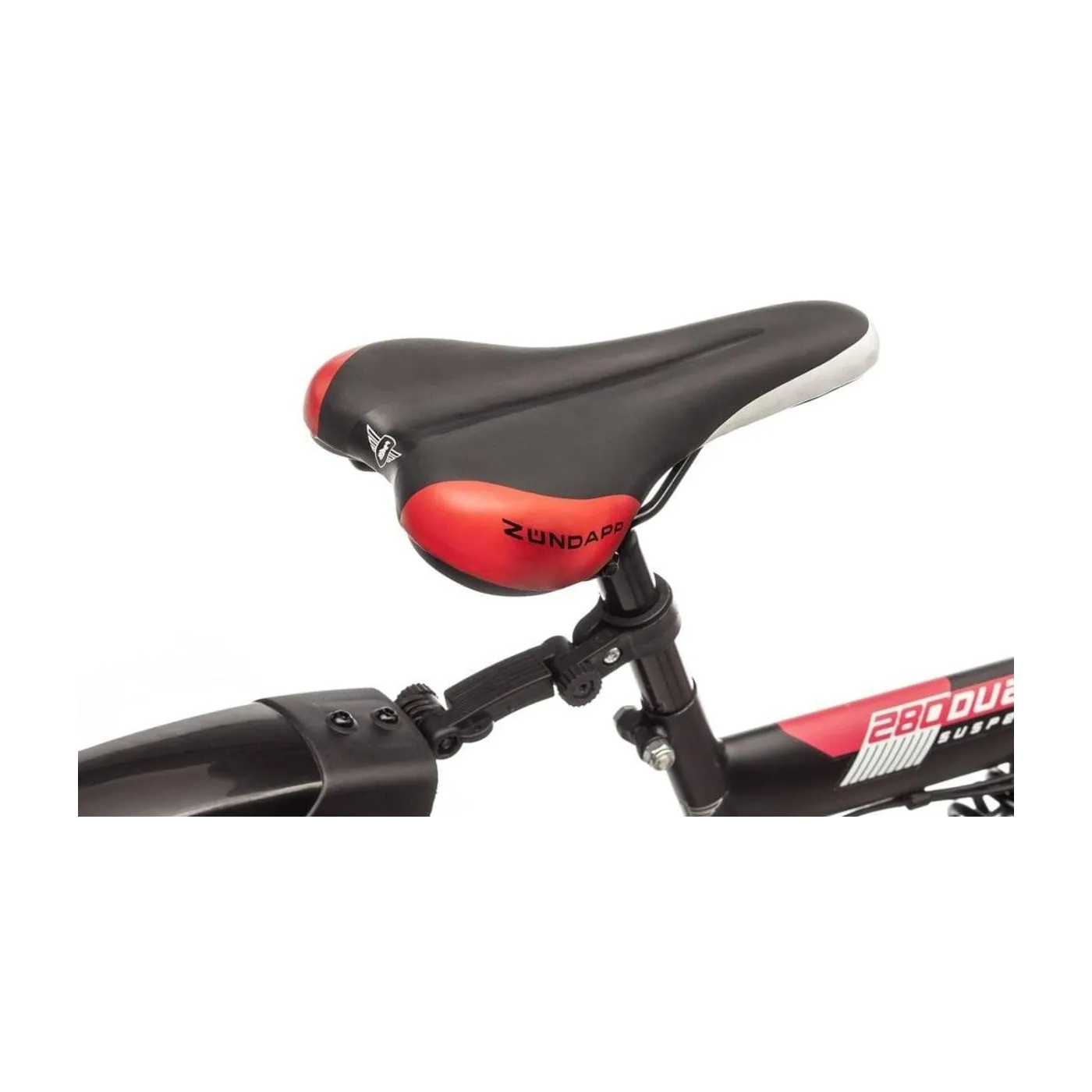 Rower górski z pełnym zawieszeniem amortyzuje nierówności podłoża dzięki doskonałej i skutecznie dba o wygodę rowerzysty podczas jazdy poza utwardzonymi szlakami. Zawieszenie ramy ma również pozytywny wpływ na zachowanie podczas jazdy, ponieważ zapewnia płynniejszą jazdę i łatwiejszą kontrolę nad rowerem. W Zündapp Blue 5.0 zainstalowano niewymagający konserwacji amortyzator ze sprężyną gazową, który można dostosować do indywidualnej wagi kierowcy, aby osiągnąć maksymalny komfort. Z przodu widelec amortyzowany Zoom ma 100 mm skoku, aby odciążyć ramiona i barki.