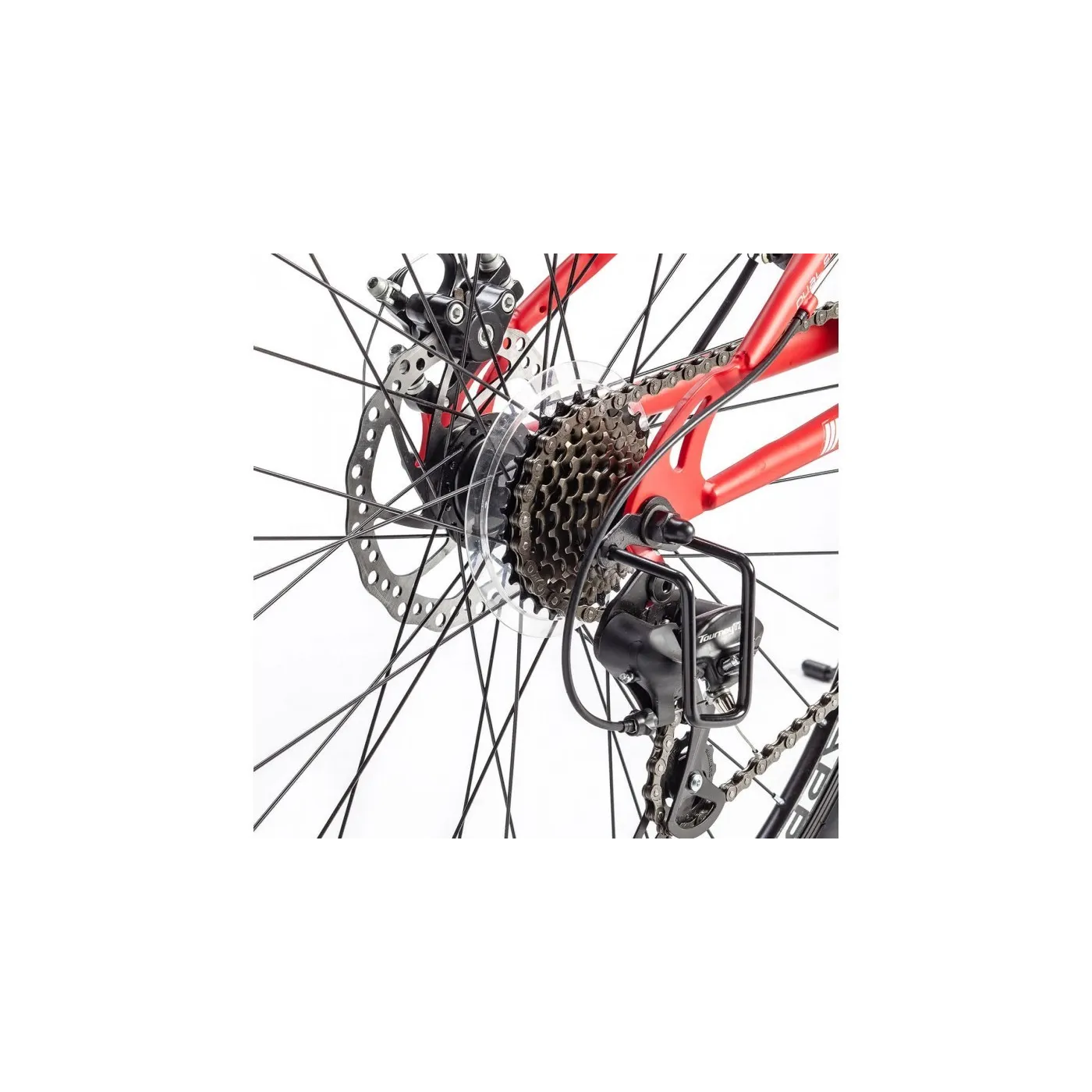 Blue 5.0 został wyposażony w 21-biegową przerzutkę Shimano, która jest obsługiwana za pomocą sprawdzonej manetki obrotowej POWER. Rower posiada mechaniczne hamulce tarczowe na przednich i tylnych kołach, dzięki którym zawsze zachowana jest kontrola prędkości oraz bezpieczne zatrzymywanie się.