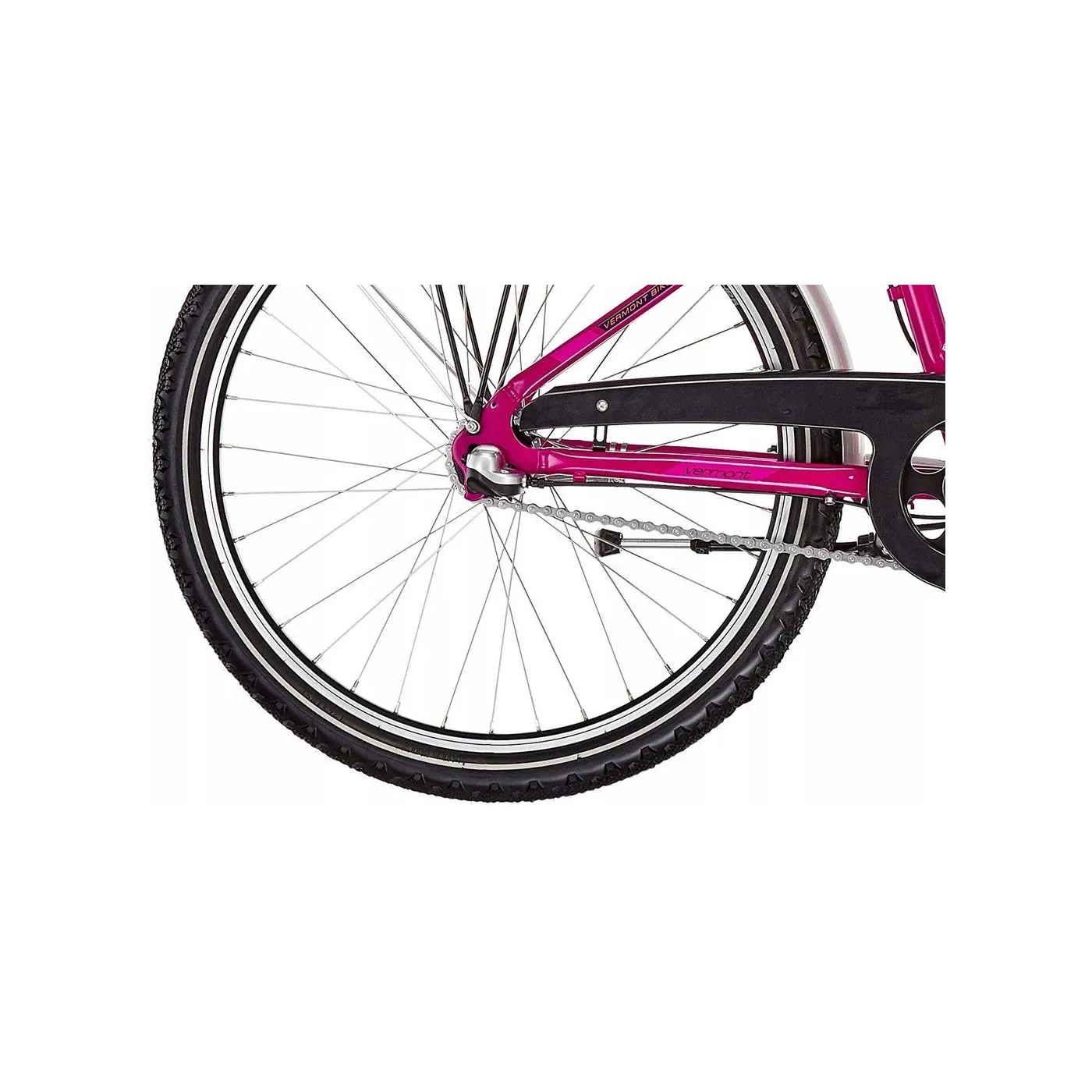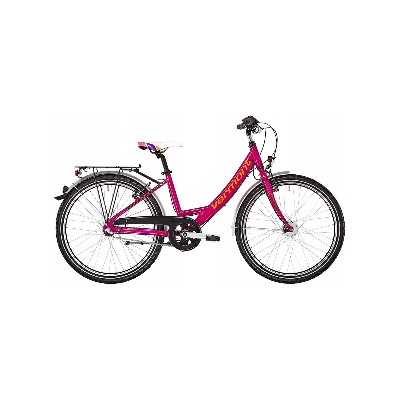 Dostępny jest pięknym różowym kolorze, dzięki czemu każda dziewczynka od razu go pokocha. Rower miejski Vermont wyposażony jest w aluminiową ramę, wytrzymały aluminiowy bagażnik oraz 3 biegową przerzutkę marki Shimano Nexus, dlatego sprawdzi się doskonale dla młodszej rowerzystki.