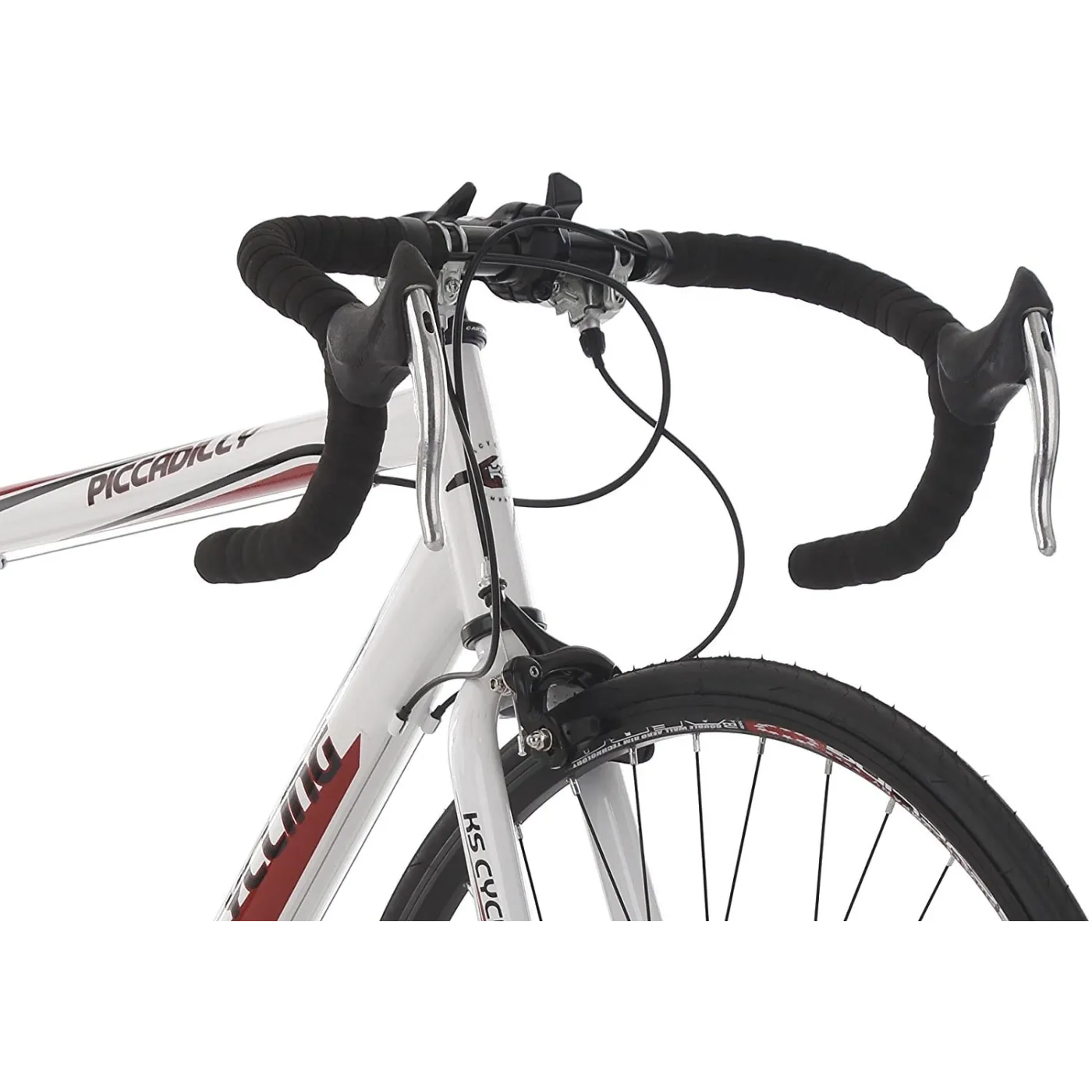 Solidny o nowoczesnym designie rower Piccadilly to świetnej jakości rower szosowy. Posiada stalową ramę, koła o średnicy 28 cali, przerzutki Shimano oraz hamulce dual pivot.