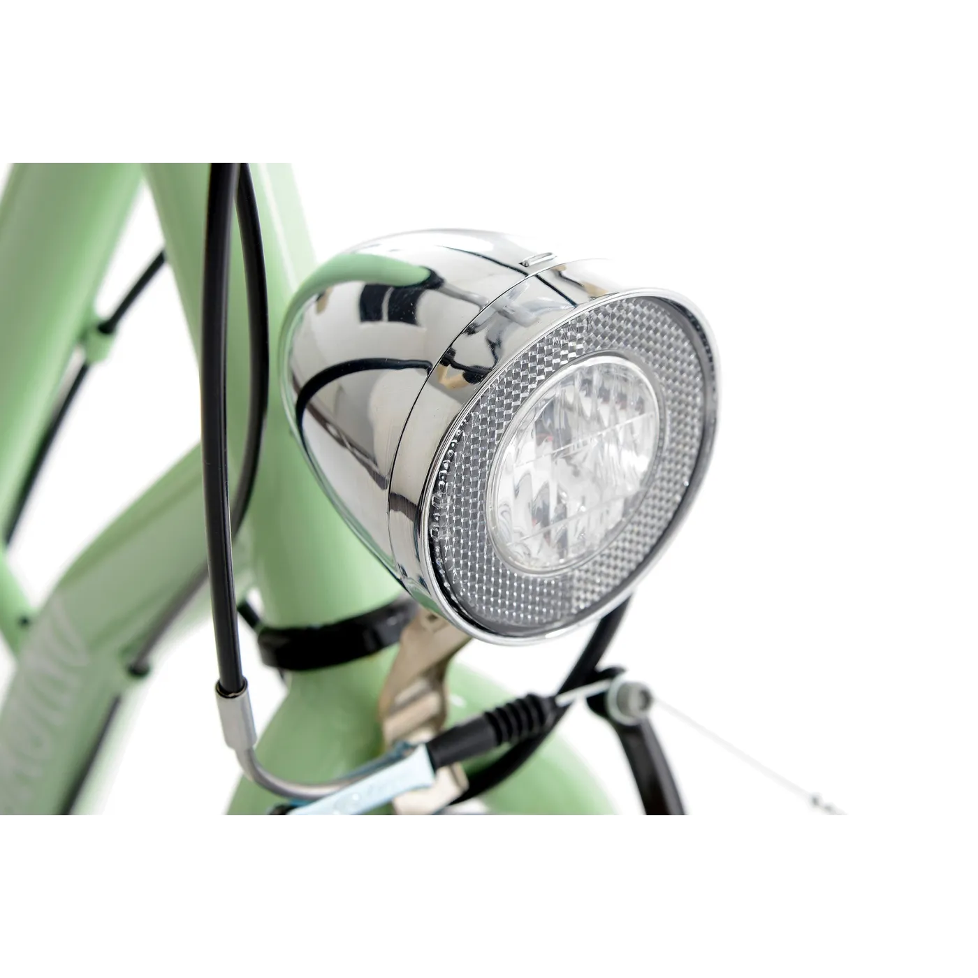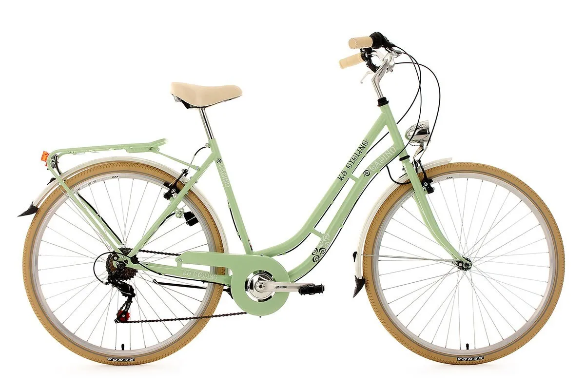 Kobiecy klasyczny rower Casino umili każdą miejską podróż! 6 biegów Shimano oraz hamulce V-brake pozwolą na komfortowe przemieszczanie się po ulicach, a reflektor zasilany przez dynamo oświetli drogę po zmroku.