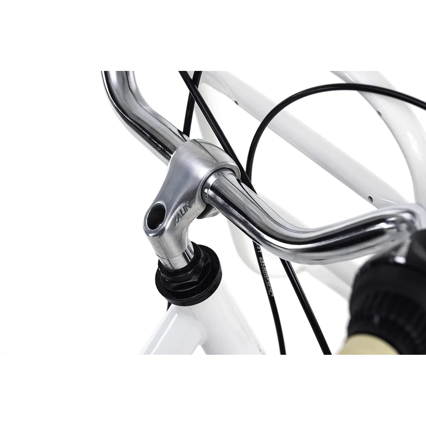 To nowoczesny rower ze stalową ramą i wieloma funkcjonalnymi komponentami. Przerzutka 6-biegowa firmy SHIMANO zapewnia relaksującą jazdę po mieście i dostosowuje się do Twoich indywidualnych potrzeb, a oświetlenie zasilane dynamo zapewnia bezpieczeństwo podczas jazdy po zmroku. Ponadto, rower ma wiele elementów bezpieczeństwa, takich jak błotniki, osłona łańcucha, koszyk, zestaw oświetlenia zasilanego dynamo i skuteczne hamulce V-brake.