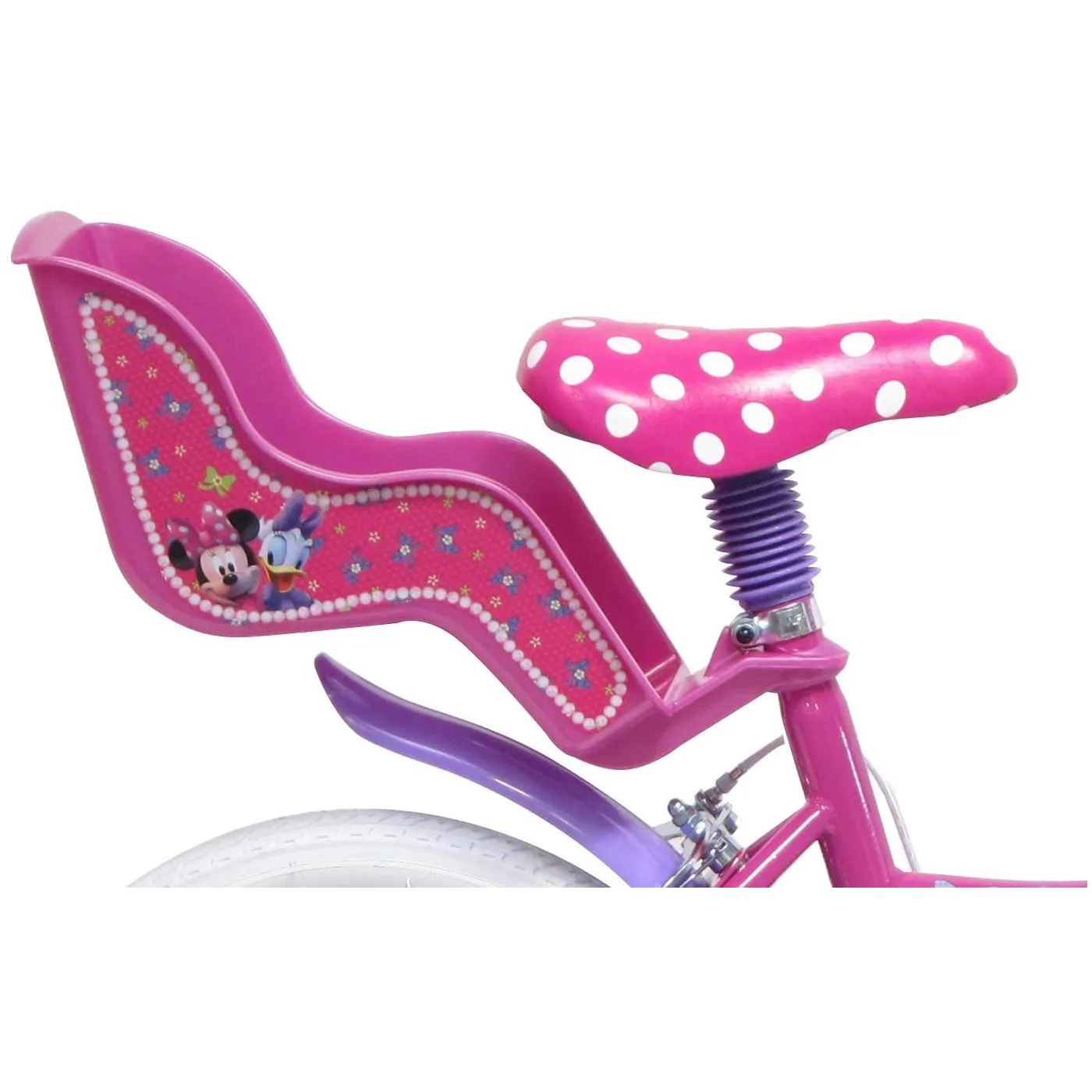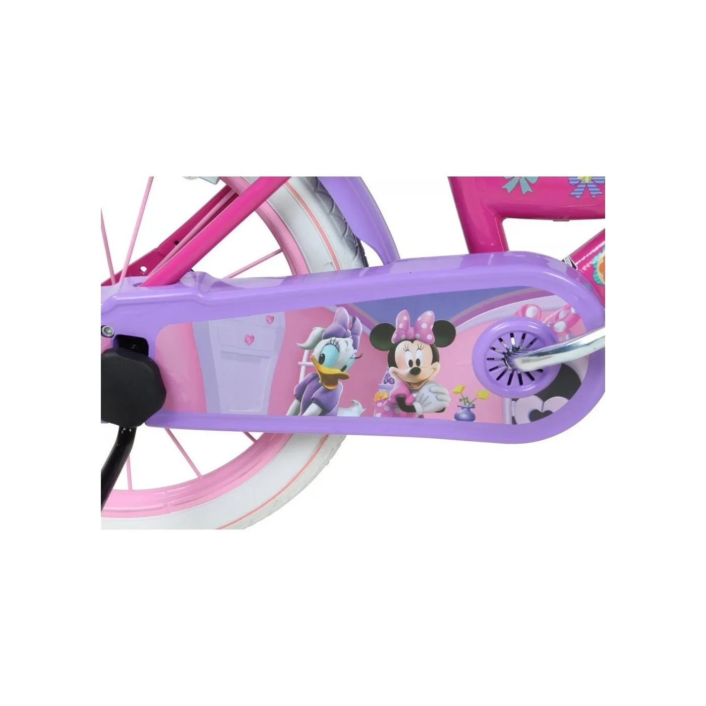 Rower jest w całości wykonany we Włoszech z materiałów doskonałej jakości, aby zapewnić bezpieczeństwo i komfort dzieciom oraz włoski styl i smak, które łączą się z pięknem postaci najbardziej kochanych przez dzieci. Ten rower Minnie ma nadmuchiwane koła o średnicy 14", stalową ramę i widelec, a także obręcze. W zestawie znajduje się przedni kosz, fotelik dla lalek, boczne koła, które bardzo łatwo można zdemontować, a także funkcjonalną osłonę na łańcuch i błotniki.