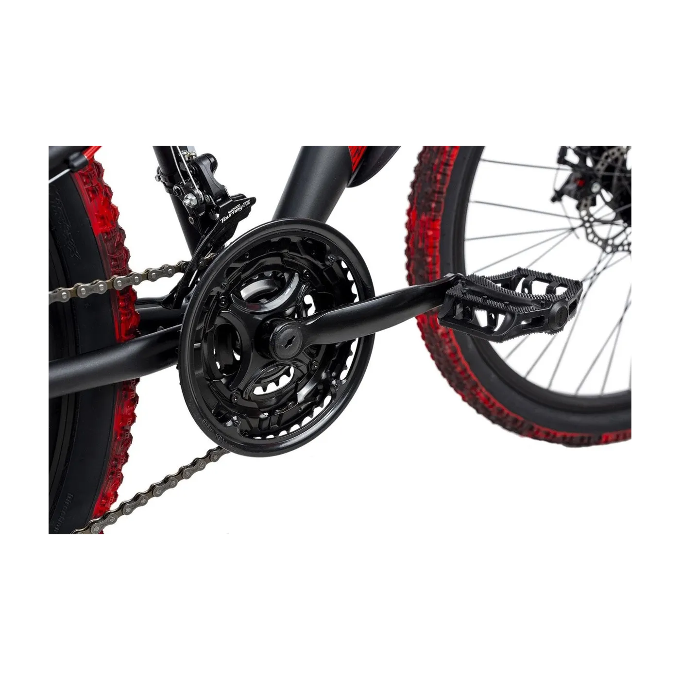 MTB Bliss zapewni Ci komfort, wygodę i bezpieczeństwo podczas każdej górskiej wycieczki. Wszystko to dzięki wygodnemu siodełku oraz amortyzacji wzmocnionej ramy, która pozwoli zachować kontrolę nawet na wyboistych drogach. Dwa hamulce tarczowe, 21-biegowe przerzutki SHIMANO, a także niebanalna, mocna kolorystyka dodadzą Ci pewność podczas wymagających terenów. Opony Muddy Red również robią wrażenie: malowanie zostało nałożone ręcznie na każdą z nich!