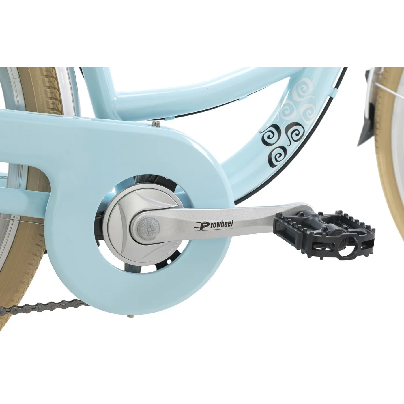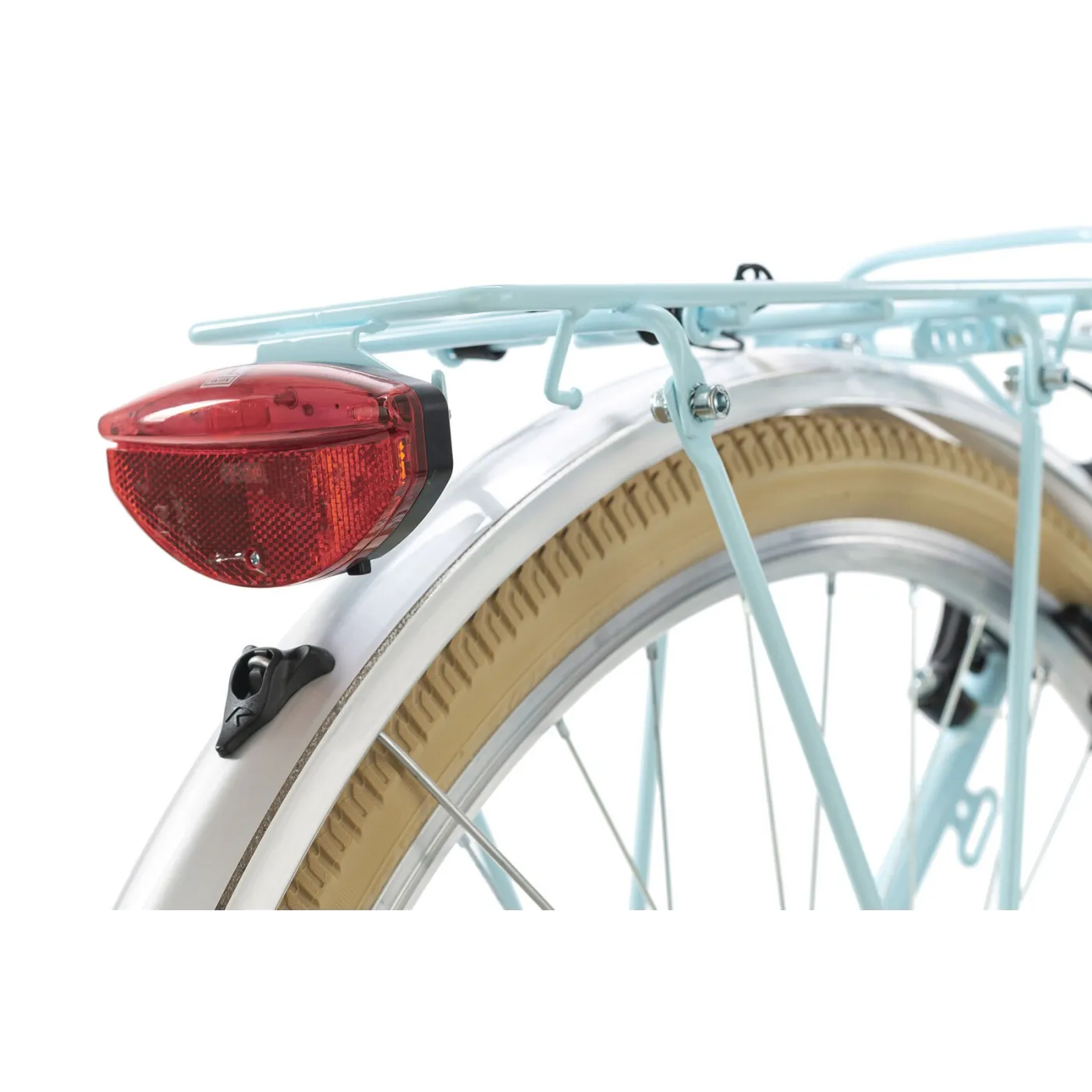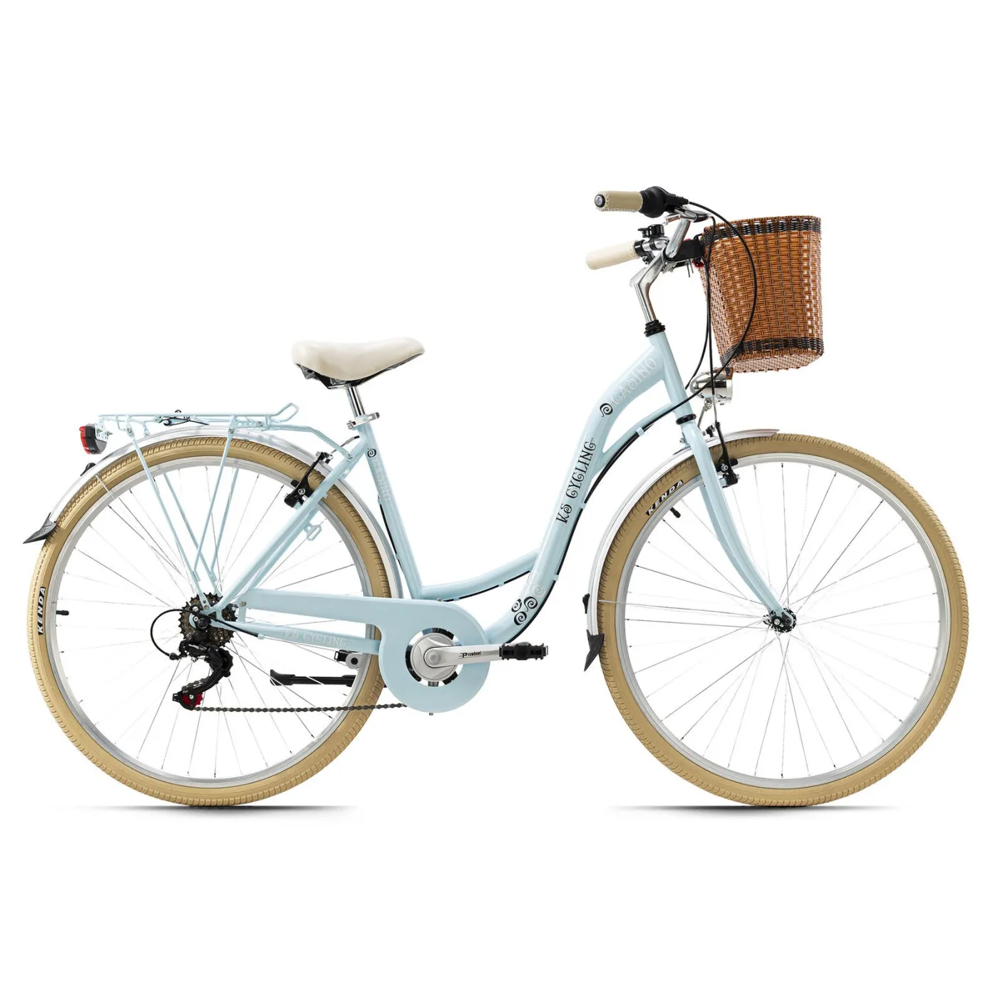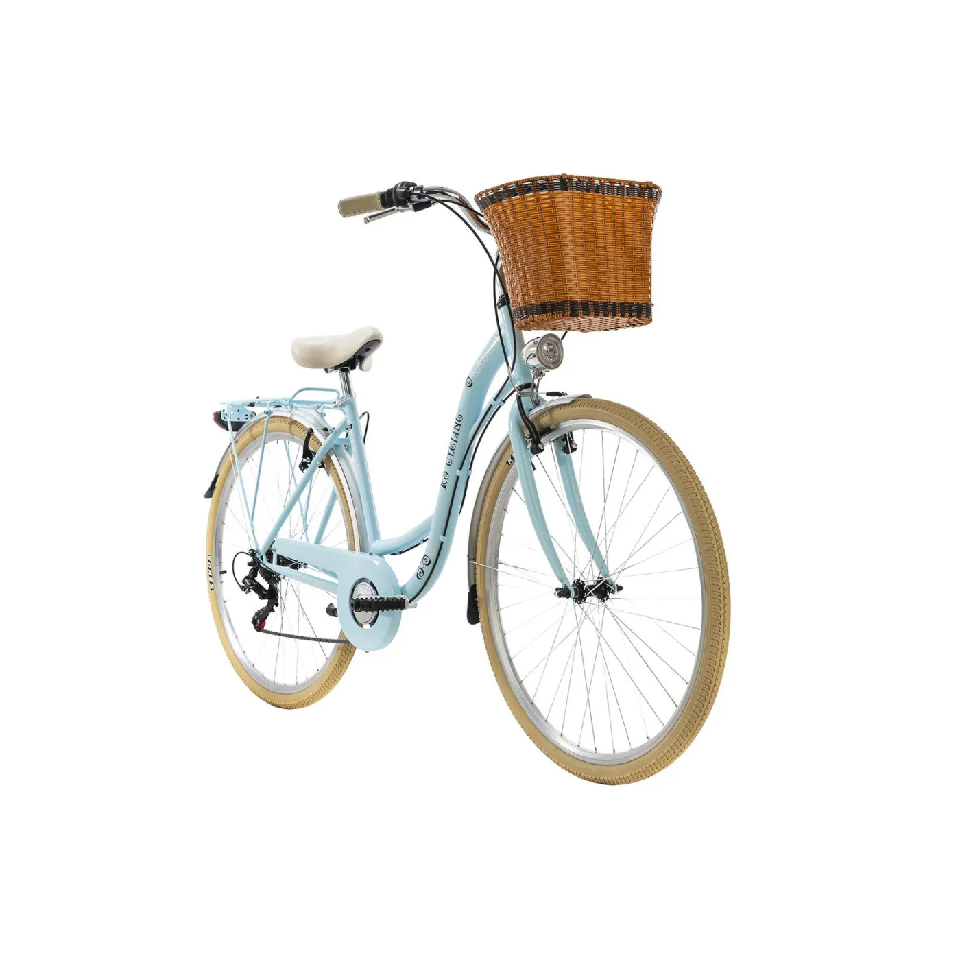 Pastelowy błękitny kolor nadaje mu wyjątkowego charakteru. Do tego kremowe opony, siodełko i chwyty kierownicy oraz stylowa lampa w stylu retro dopełniają elegancki wygląd. W koszyku na kierownicy bez problemu przewieziesz swoje zakupy. Miejska wysoka kierownica pozwoli idealnie dopasować pozycję jazdy do każdego rowerzysty. 6-biegowa przerzutka SHIMANO Tourney oferuje wygodną i płynną jazdę dostosowaną do Twoich potrzeb. Biegi możesz łatwo zmieniać dzięki intuicyjnej manetce obrotowej.
