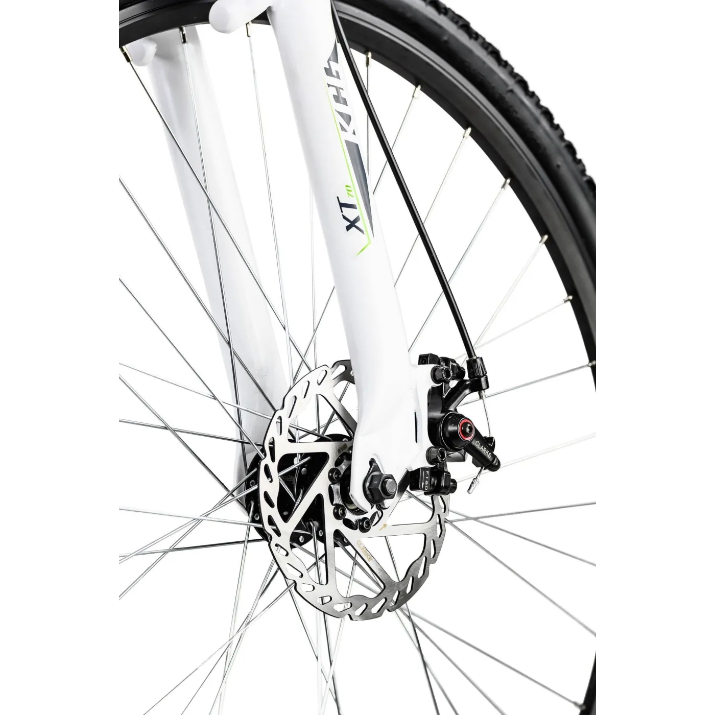 Przekona nawet tych bardzo wymagających rowerzystów. Dzięki 21-biegowej skrzyni biegów SHIMANO, mechanicznym hamulcom tarczowym z tyłu i z przodu, amortyzowanemu widelcowi oraz dużym kołom otrzymujesz solidnie wyposażony rower, który będzie Twoim wiernym towarzyszem podczas wielu tras.