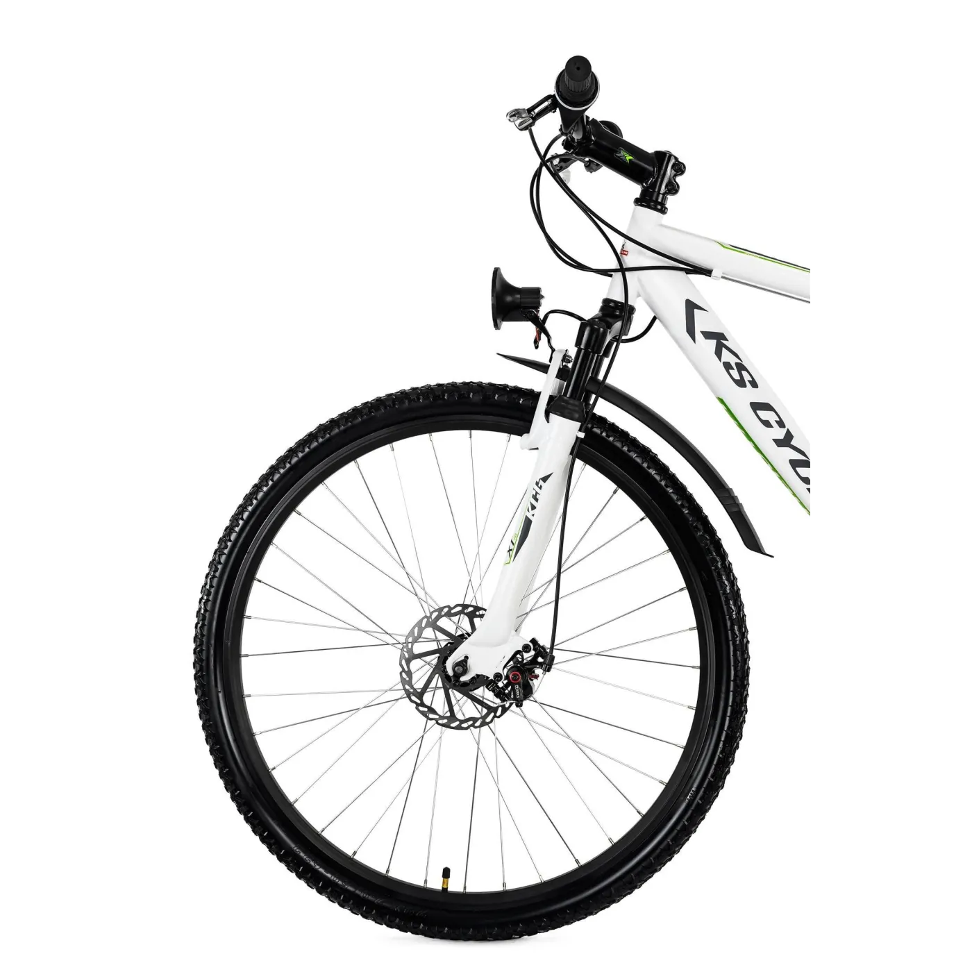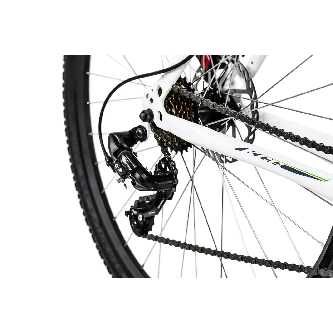 29-calowy rower terenowy zachwyca białą ramą i eleganckimi, czarnymi dodatkami - łączy w sobie nowoczesność oraz klasyczny wygląd.