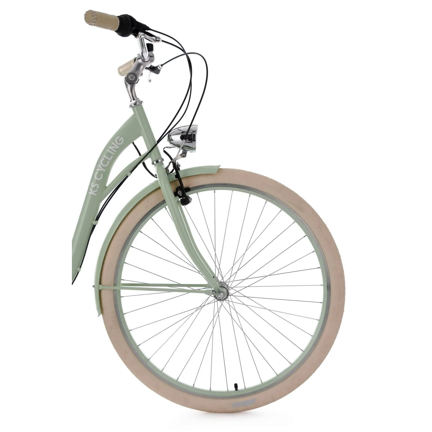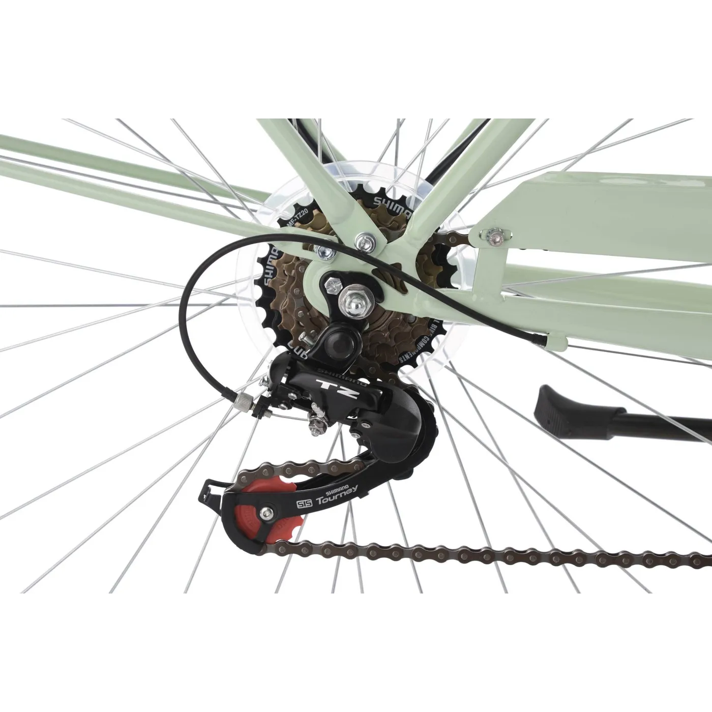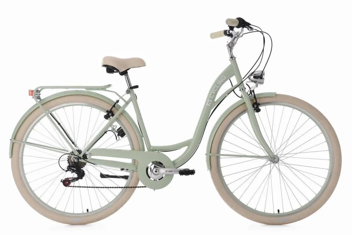 Śliczny rower miejski, w kolorze zielonym z pewnością przyciągnie wzrok niejednej mijanej osoby. Wyposażony w "balonowe" opony ze specjalnym pneumatycznym zawieszeniem! Dzięki temu niwelowane są wstrząsy i tym samym zwiększa się komfort jazdy. Ponadto rower wyposażony jest w 6-biegową przerzutkę Shimano, oświetlenie zasilane dynamo oraz bagażnik.
