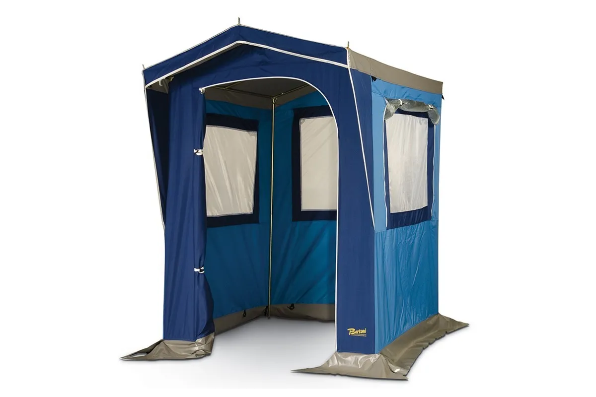 Namiot Pigalle marki BERTONI nadaje się do wielu zastosowań, może służyć jako kuchnia, ale także jako garderoba czy prysznic. Wszystkie trzy okna wyposażone są w moskitierę i Kristal, a drzwi wejściowe można całkowicie otworzyć.