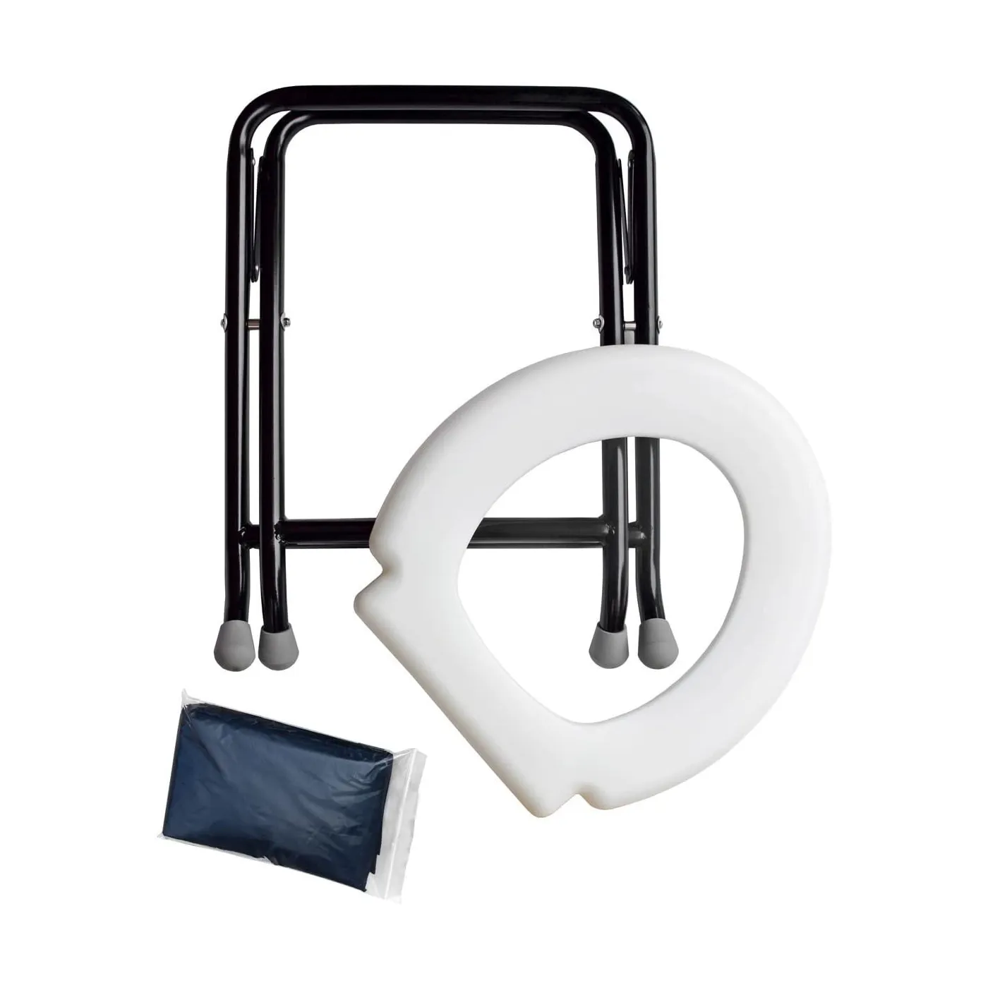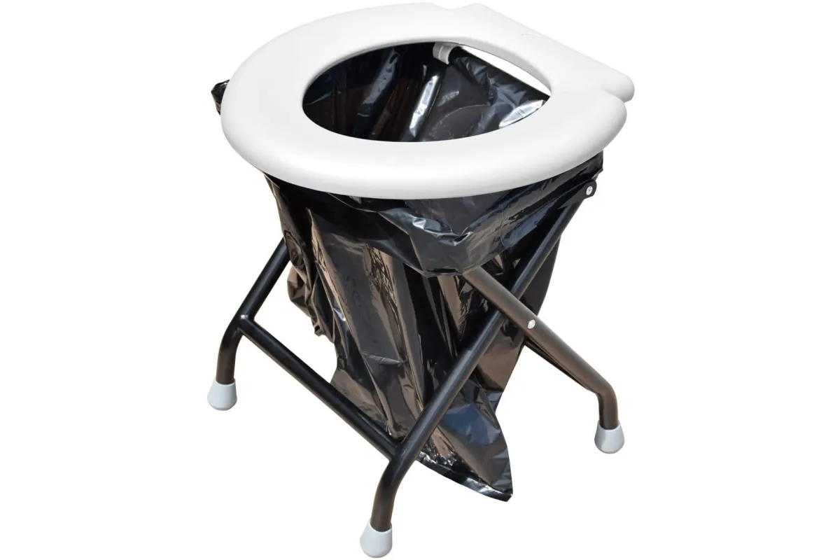 Praktyczna składana toaleta do podróży. Można go szybko i łatwo schować i jest gotowy do użycia w mgnieniu oka. Przyjazny dla środowiska, ponieważ nie wymaga wody.