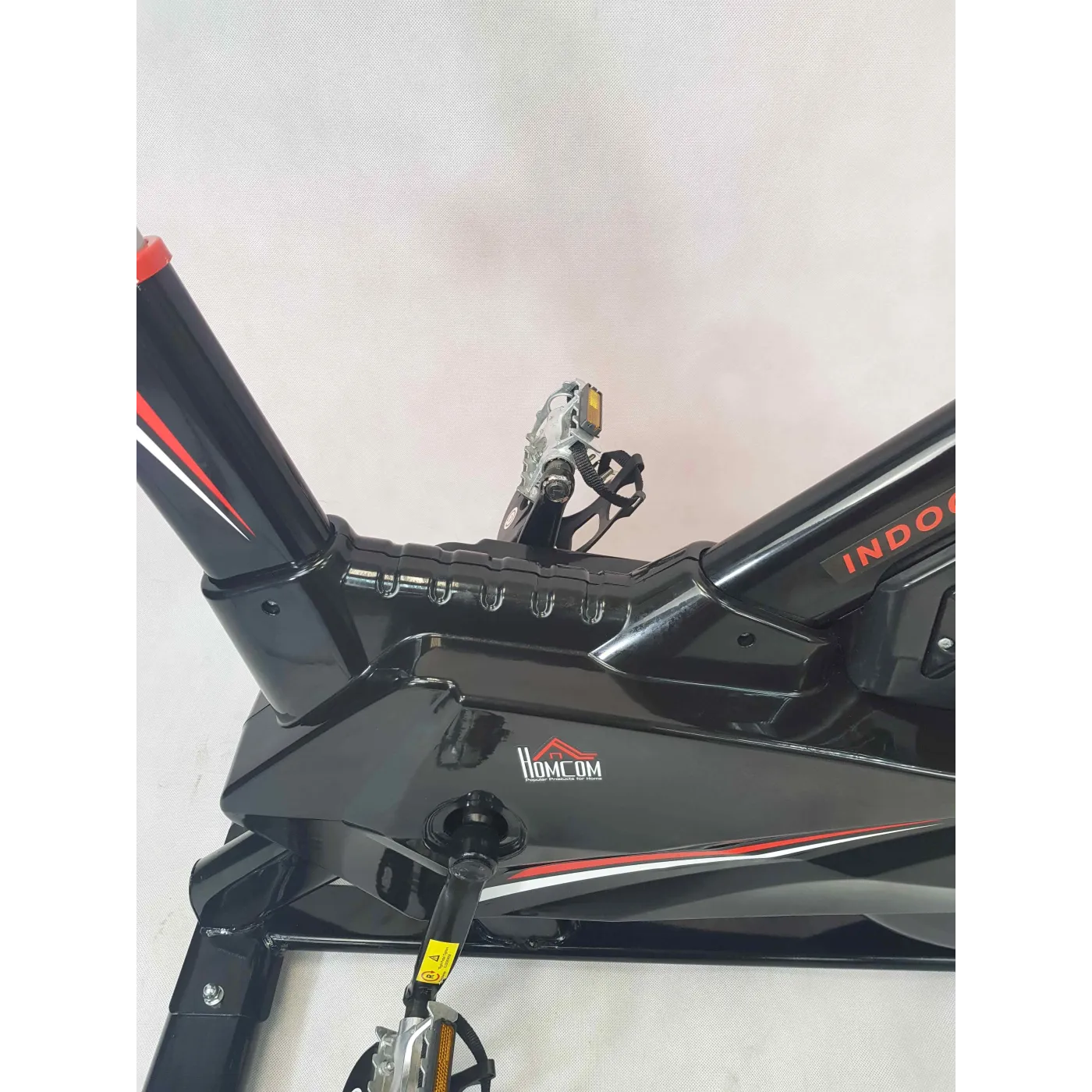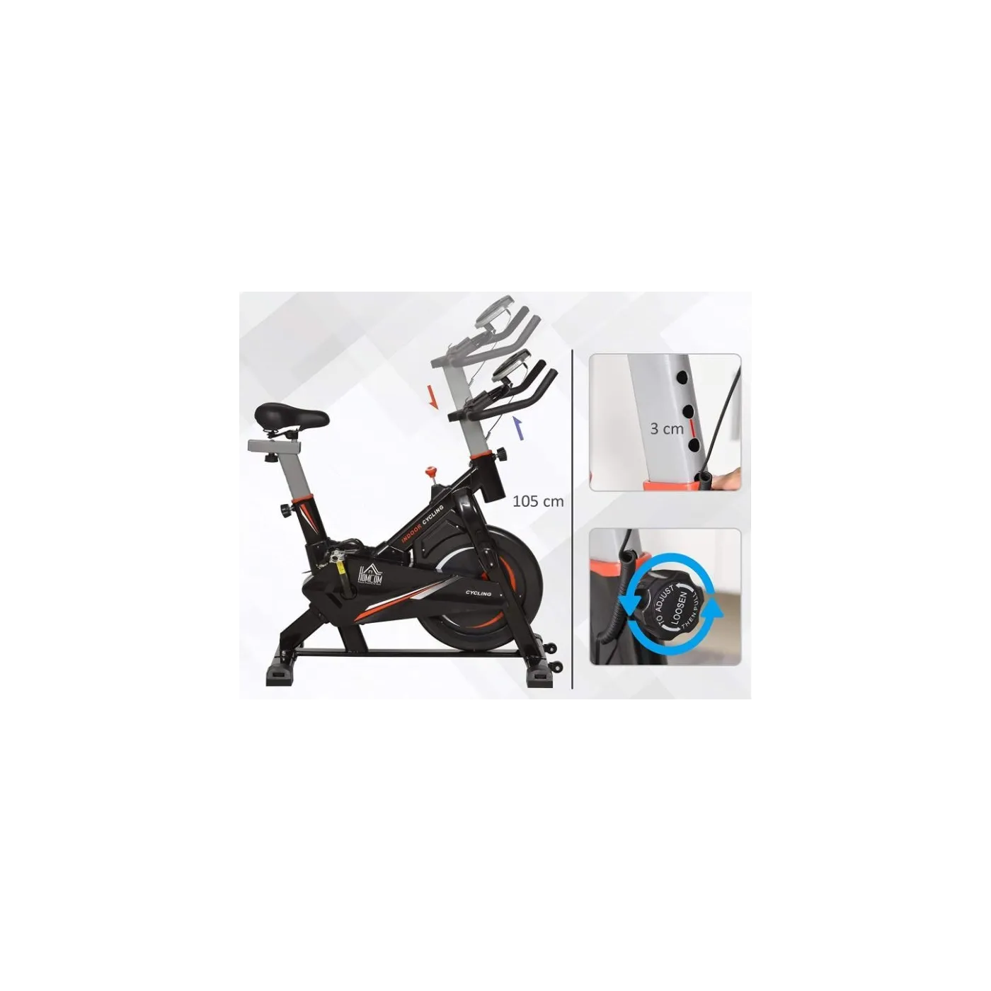 Konstrukcja HomCom Heimtrainer wykonana jest w całości ze stali z pedałami i antypoślizgową podstawą, może wytrzymać do 120 kg. Z przodu znajdują się dwa koła, które ułatwiają przenoszenie roweru. Aby dostosować intensywność treningu, wystarczy użyć odpowiedniego pokrętła. Aby trening był jeszcze bezpieczniejszy, dodany jest również hamulec bezpieczeństwa na ramie roweru. Siedzisko i kierownica są wyściełane PCV i oba można regulować na 5 różnych poziomach wysokości. Dodatkowym ułatwieniem oferowanym przez ten model roweru stacjonarnego jest możliwość regulacji siedzenia do przodu oraz do tyłu.