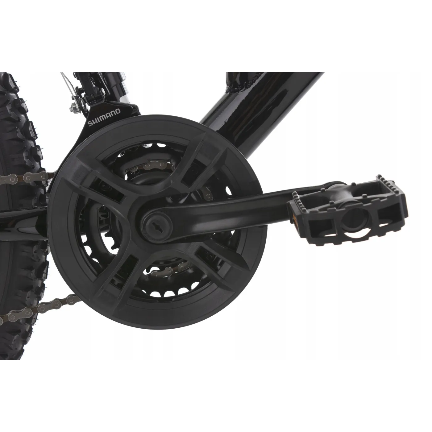 Chłopięcy rower górski Xtraxx 129K to doskonały wybór dla młodzieży. Ma czarny kolor, który świetnie komponuje się z toksyczną zielenią napisów co z pewnością przypadnie do gustu każdemu chłopcu lubiącemu się wyróżniać. Solidna, amortyzowana rama gwarantuje pełen komfort jazdy nawet na bardzo nierównej powierzchni, natomiast dwa mechaniczne hamulce tarczowe V-LUXE dbają o bezpieczeństwo użytkownika, niezależnie od podłoża oraz warunków atmosferycznych. Rower wyposażony został w dokładnej jakości przerzutkę tylną Shimano, która zapewnia wysoka wygodę jazdy.