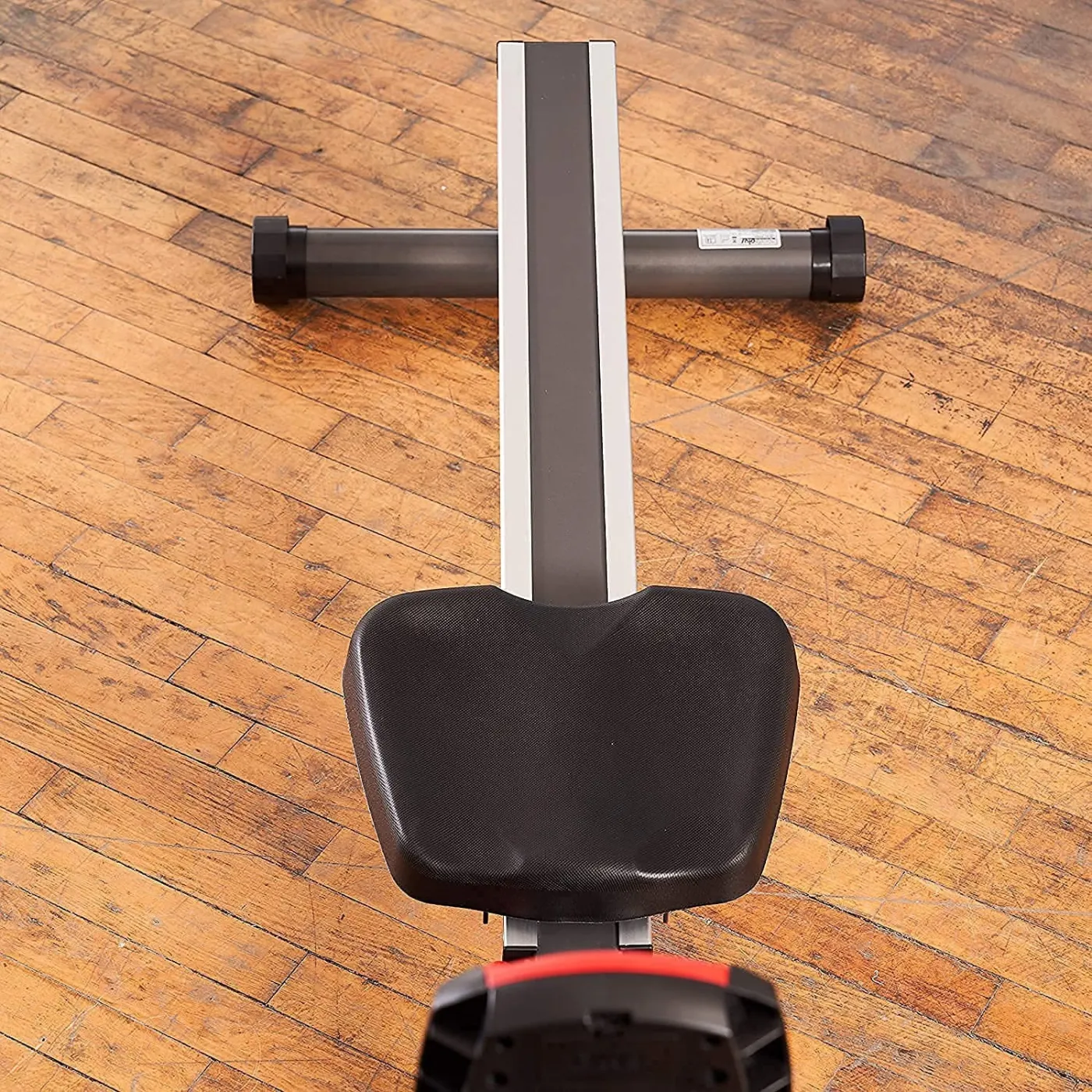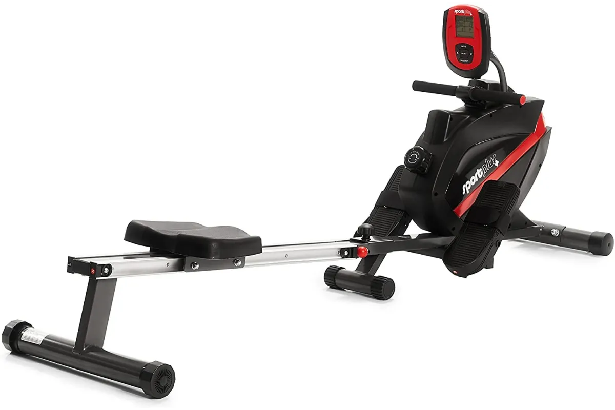 Wioślarz SportPlus jest wyposażony w cichy magnetyczny układ hamulcowy, którego opór treningowy można regulować w ośmiu krokach. Wygodne siedzisko z prowadnicami kulkowymi cicho nad wysokiej jakości aluminiową szyną. Zapewnia to spokojny i harmonijny trening we własnych czterech ścianach.