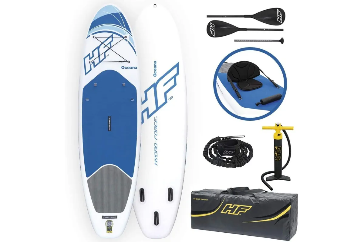 Pływanie na SUP jest stosunkowo łatwe dla każdego, a korzyści zdrowotne wynikające z tego sportu są ogromne. Spróbuj sił na desce SUP z zestawem Hydro Force Oceana Stand Up Paddleboard. Deska ma idealny kształt do bezpiecznego i wielofunkcyjnego pływania na prawie każdej wodzie. Materiał ściegu sprawia, że deska jest wyjątkowo sztywna i wytrzymała, a jednocześnie jest lekka. Deska ma udźwig dostosowany do 130 kg.