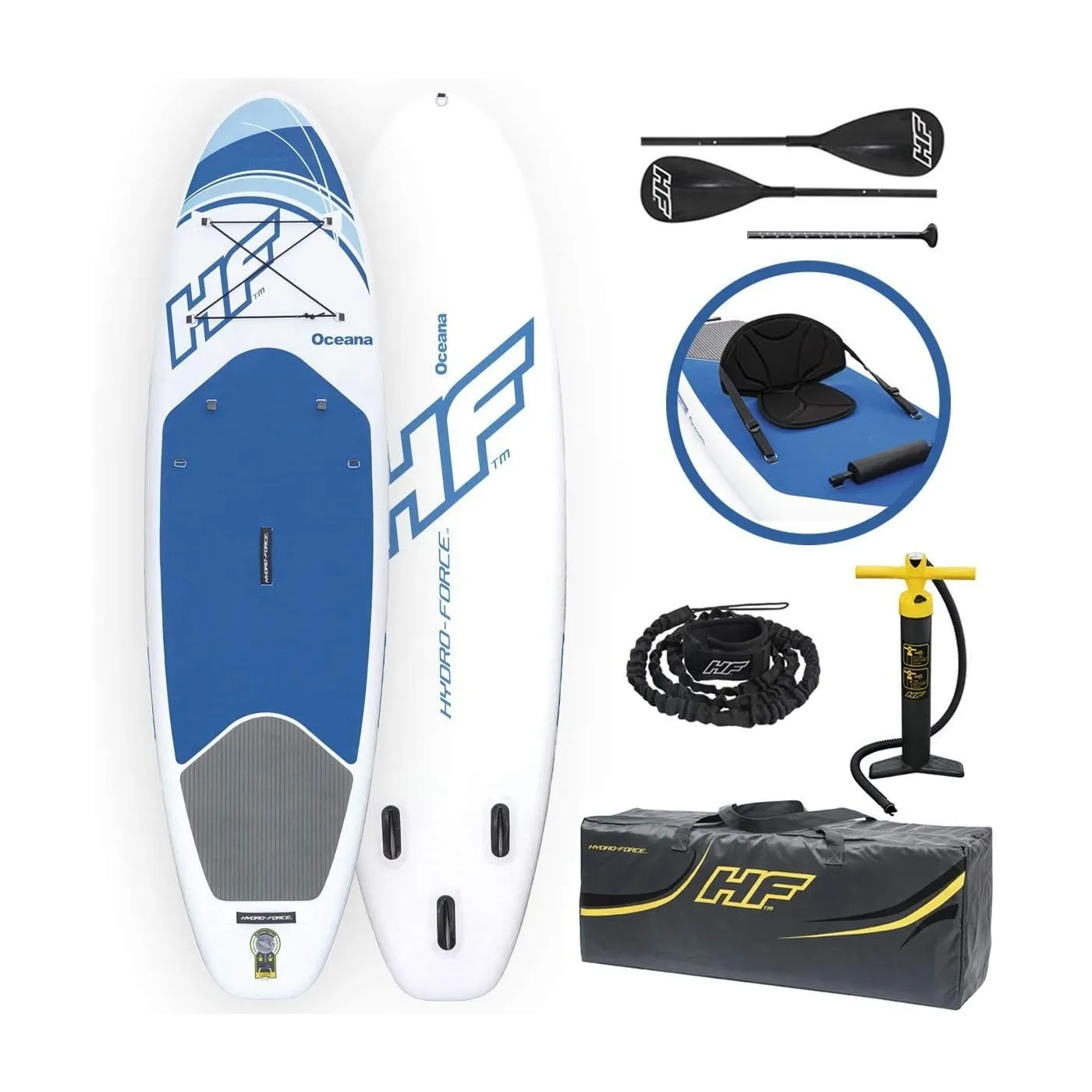 Gdy będziesz gotowy do użycia deski, po prostu napompuj go za pomocą dołączonej pompy ręcznej i przygotuj się na niezwykły dzień na wodzie. Ponieważ jest nadmuchiwana, możesz zabrać ją ze sobą wszędzie, niezależnie od tego, czy jest to jezioro, morze czy rzeka. Wygodny uchwyt na desce pozwala łatwo przenieść produkt do miejsca którego zmierzasz. Elastyczny sznur na desce zapewnia miejsce na rzeczy osobiste, gdy jesteś na wodzie. Po zakończeniu zawór powietrza pozwala szybko spuścić powietrze z deski w krótkim czasie. Wystarczy zwinąć deskę Hydro-Force Oceana, włożyć ją do dołączonej torb podróżnej i ruszać w drogę.