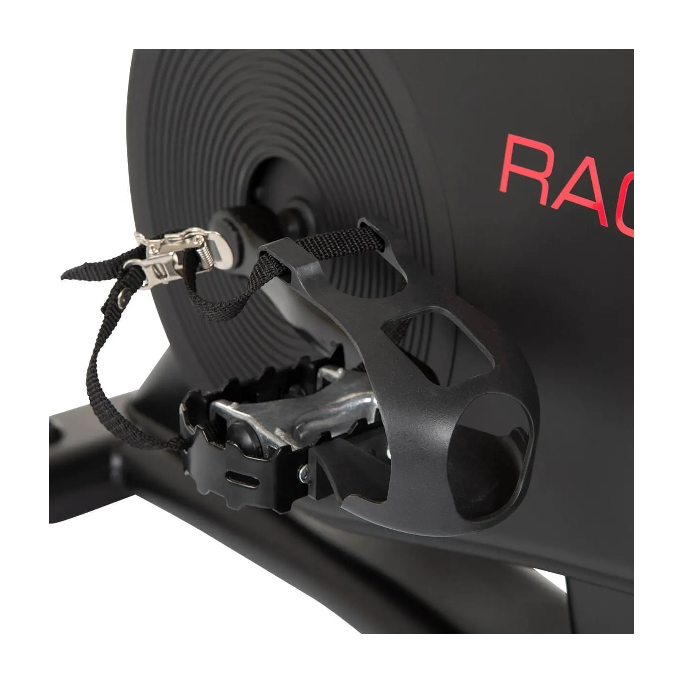 Zacznij pedałować, a jednocześnie kontroluj prędkość za pomocą nowoczesnego hamulca magnetycznego. Racer wzmocni mięśnie łydek i ud oraz pozwoli Ci spalić mnóstwo kalorii. Twój układ sercowo-naczyniowy będzie wzmacniany z każdym szybkim treningiem. Podczas ćwiczeń zaangażowane są również mięśnie tułowia z przednimi i bocznymi mięśniami brzucha. Zwłaszcza podczas zwiększania tempa i jazdy na stojąco. Motywuj się muzyką i daj gazu. Pozwól doprowadzić się do najwyższej formy i przygotuj się na kolejny sezon rowerowy w domu, niezależnie od pogody.