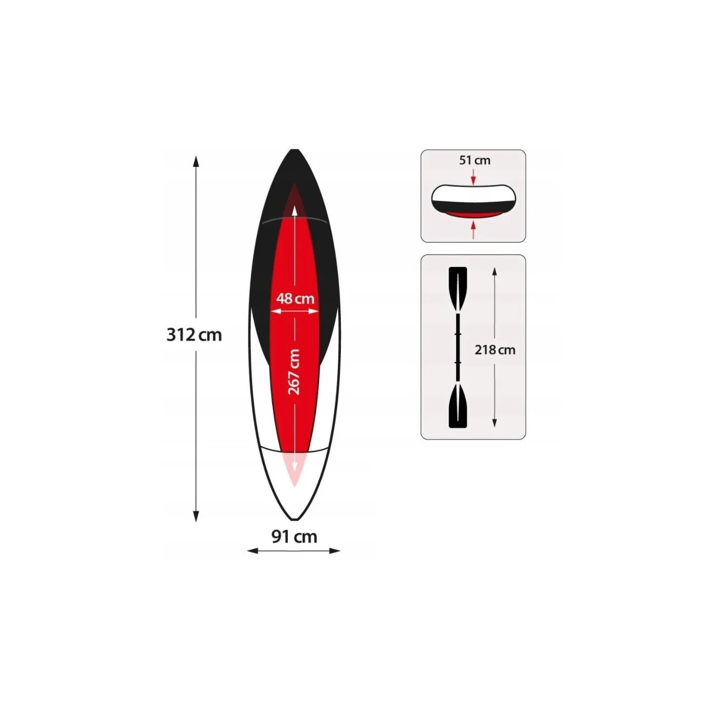 Kajak w wersji K2 to powiększona wersja znanej i cenionej serii Explorer, który może pomieścić na swoim pokładzie aż 2 osoby. Pokaźnych rozmiarów kajak oraz bardzo wygodne, dwa dmuchane siedziska z pewnością zapewnią masę przyjemnej rozrywki. Explorer wykonany jest z trwałego materiału PVC o zwiększonej grubości co sprawia, że łódź jest bardzo wytrzymała i odporna na otarcia. Maksymalna wyporność wynosi 180kg, a w zestawie znajdują się także dwa wiosła.  Siedziska znajdujące się w kajaku można wyjmować dzięki czemu łódź może być wykorzystywana także w pojedynkę z powiększoną przestrzenią na załadunek dodatkowych akcesoriów. Kajak wyposażony został w nowoczesny zawór i bardzo wydajną pompkę, dzięki której w kilka chwil łódź jest gotowa do użycia.