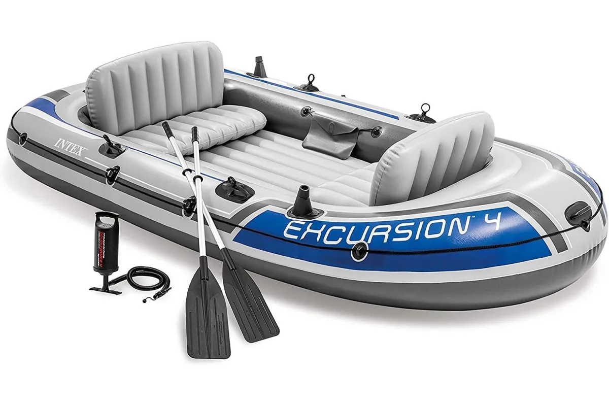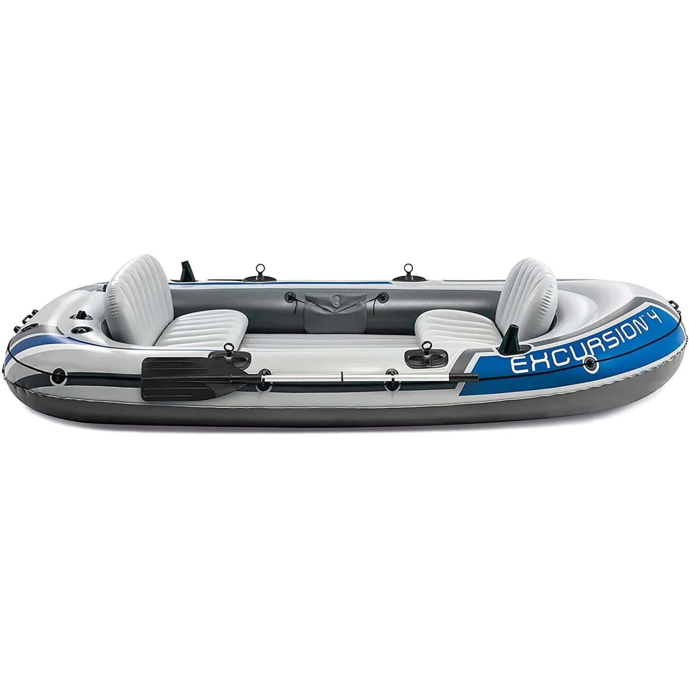 Ponton Intex Excursion 4 to jedna z większych serii tych pontonów. W tym wypadku mogą z niego korzystać maksymalne 4 osoby oraz dodatkowo maksymalna waga jaką jest w stanie unieść ponton wynosi 400kg. Na burtach znalazły się mocowania do wioseł.