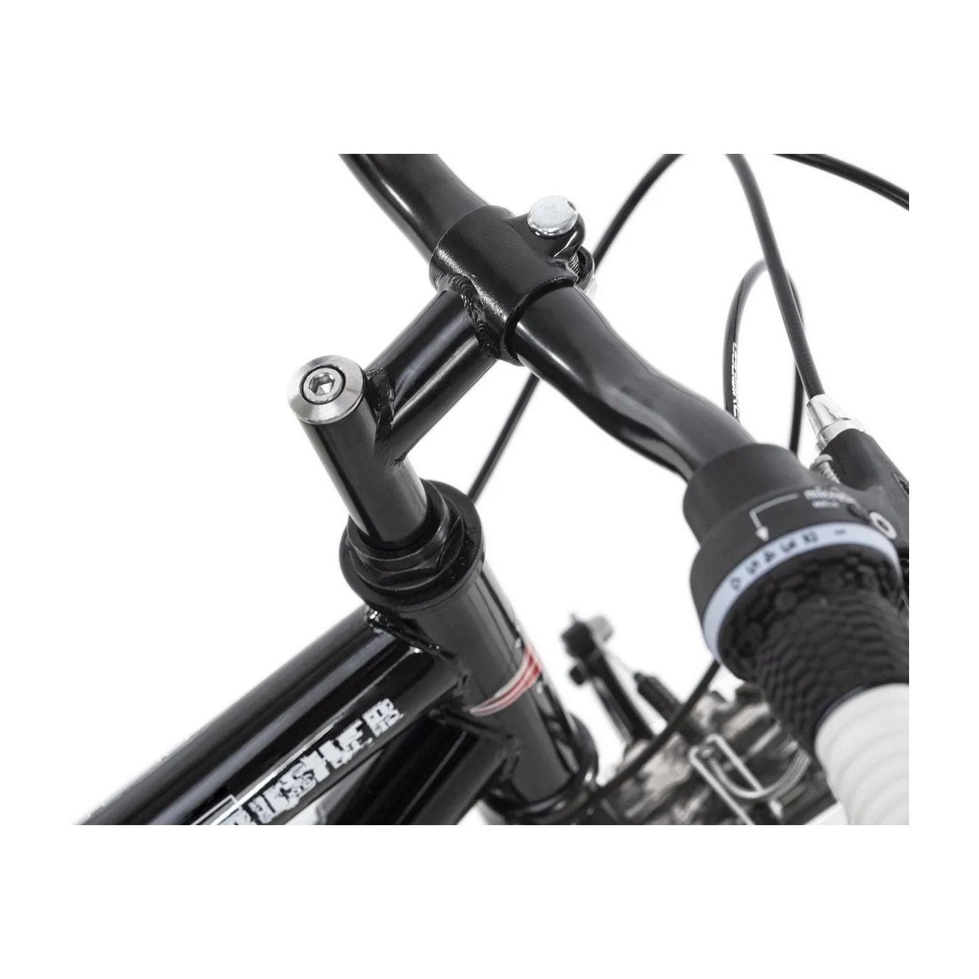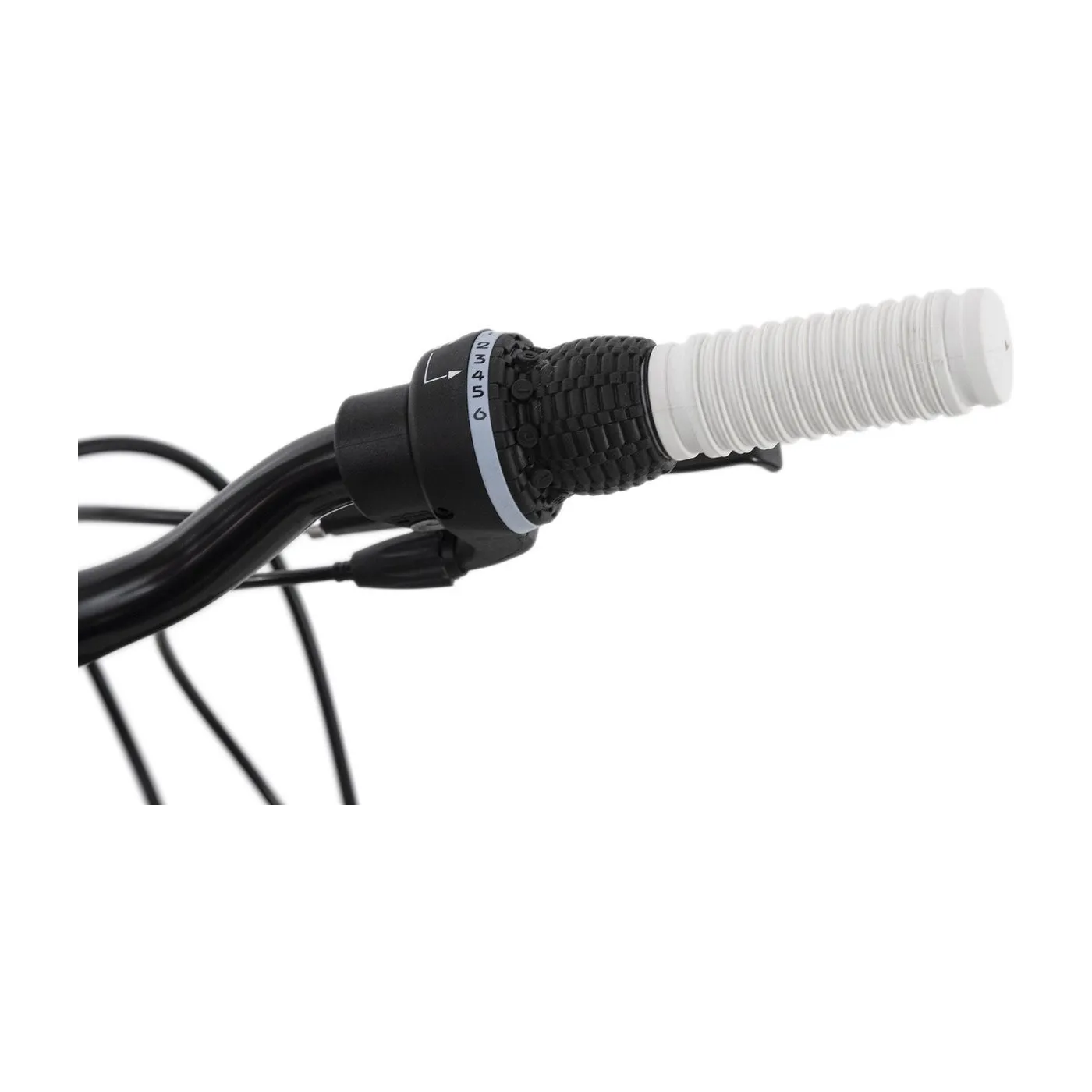 ⚙️ W kwestii napędu nie pozostawiono miejsca na kompromisy. Rower został wyposażony w sprawdzony system przerzutek oparty na tylnej przerzutce Shimano Tourney TZ SIS, która w połączeniu z manetką typu Microshift 1x6 gwarantuje płynne i bezproblemowe zmiany biegów. Taka konfiguracja pozwala na dobranie odpowiedniego przełożenia niezależnie od warunków trasy – zarówno podczas jazdy po płaskich drogach, jak i lekkich wzniesieniach. 6 biegów zapewnia wystarczającą wszechstronność do codziennego użytkowania, zachowując przy tym prostotę obsługi.