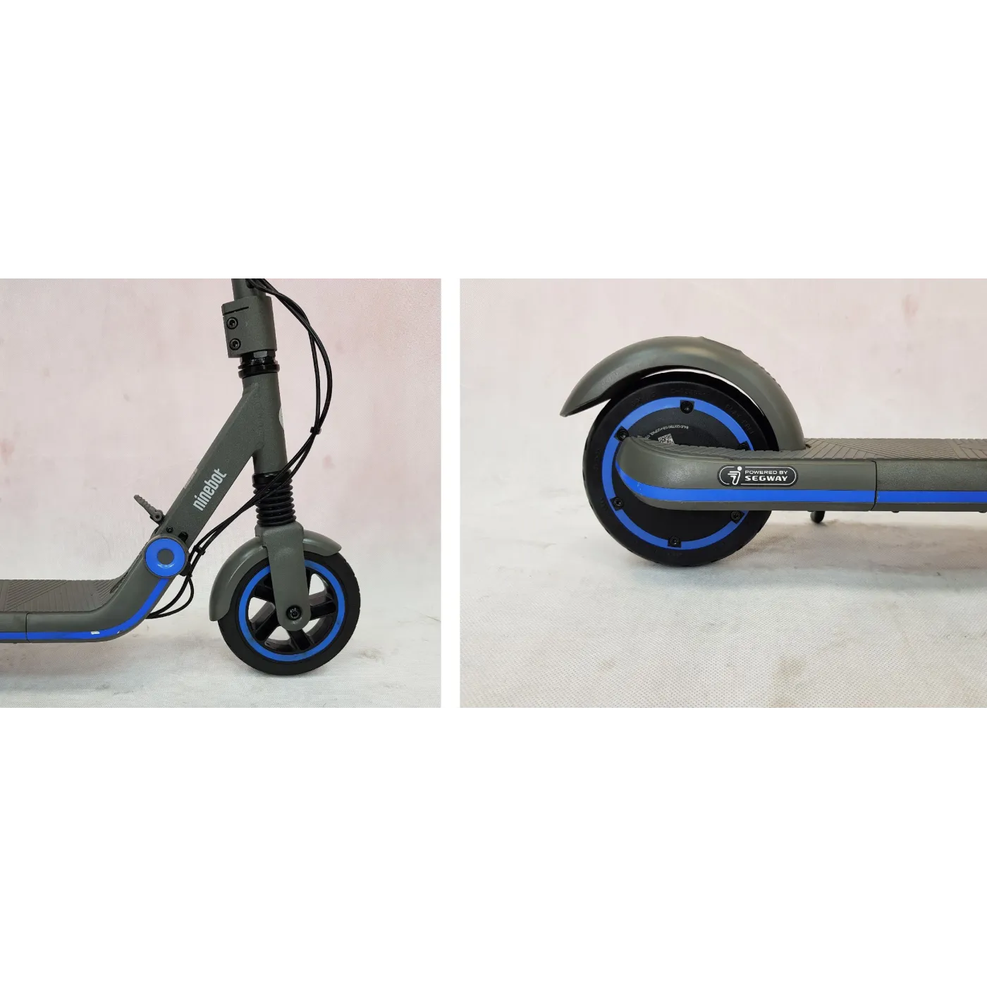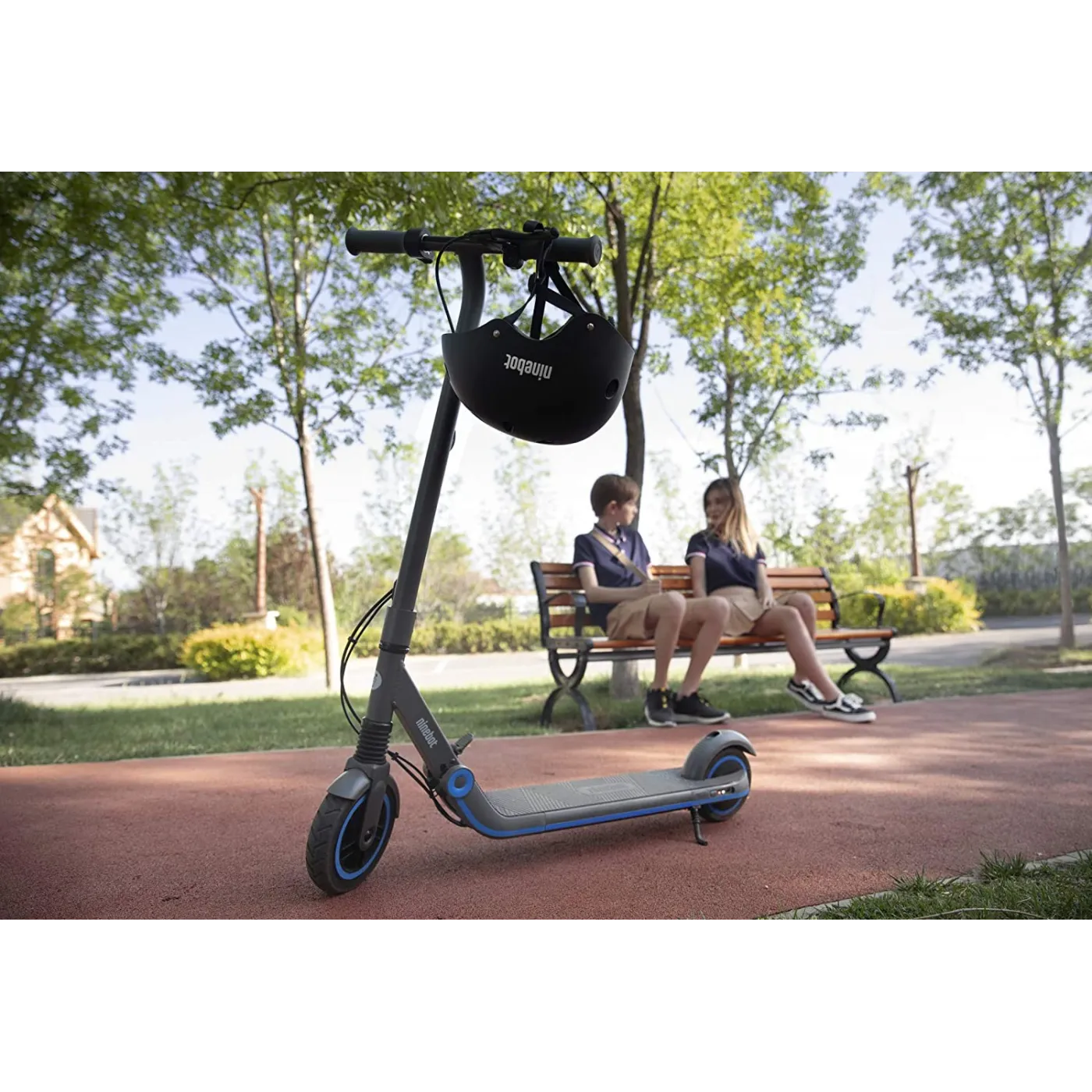 Ninebot by Segway eKickScooter ZING E10 to hulajnoga elektryczna dla starszych dzieci w wieku 8-14 lat. Jest lekka i łatwa do złożenia, a maksymalna prędkość wynosi 16 km/h. Kierowca ma do wyboru trzy tryby jazdy (Bezpieczny, Manualny oraz Turbo), dzięki czemu dostosuje pojazd do swoich potrzeb.