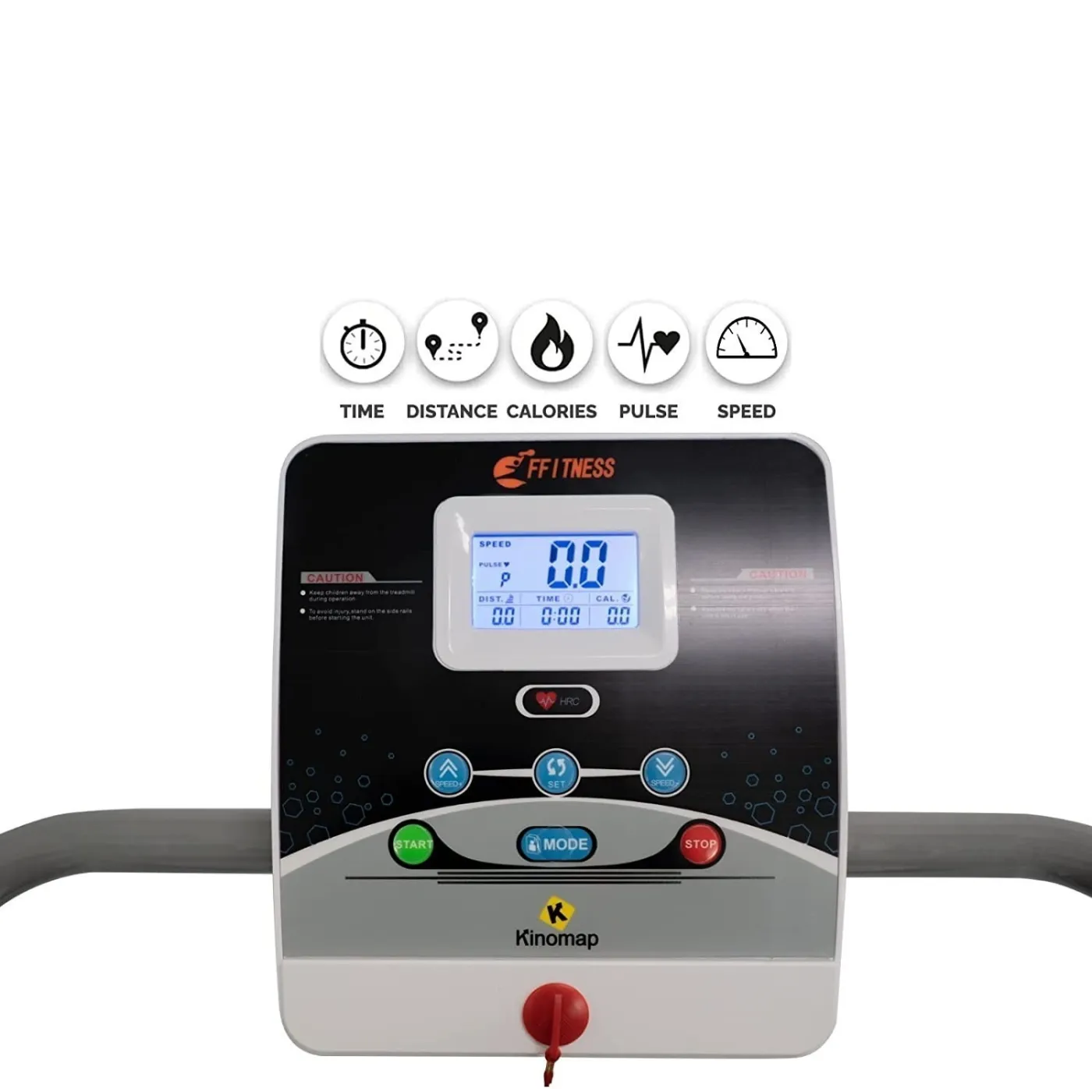 Bieżnia marki FFitness pomaga zachować formę i schudnąć. Poprawia zdrowie serca i krążenie krwi, tonizuje wszystkie mięśnie ciała i zwiększa elastyczność stawów oraz wzmacnia twoją wytrzymałość fizyczną. Umożliwia również na korzystanie z aplikacji Kinomap i Zwift dzięki którym masz wstępnie ustawione treningi online, środowiska wirtualne, sesje treningowe i wyzwania ze znajomymi. Chodź i biegaj w domu obszar do biegania o wymiarach 100 x 40 cm tylko 30 cm głębokości. Łatwa do przemieszczania dzięki dwóm wygodnym kółkom z czujnikami na podpórce na rączkach i pulsometrze.