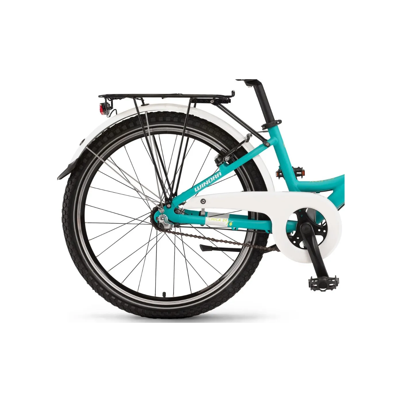 Idealnie wyprofilowana, lekka rama w połączeniu z 24 calowymi kołami z odpowiednim bieżnikiem świetnie sprawdzi się na asfalcie jak i na polnych ścieżkach. Dwa hamulce V-brake oraz kontra pozwolą zachować bezpieczeństwo jazdy, a 3 biegi od Shimano Nexus sprawią, że jazda w trudniejszym terenie będzie komfortowa.