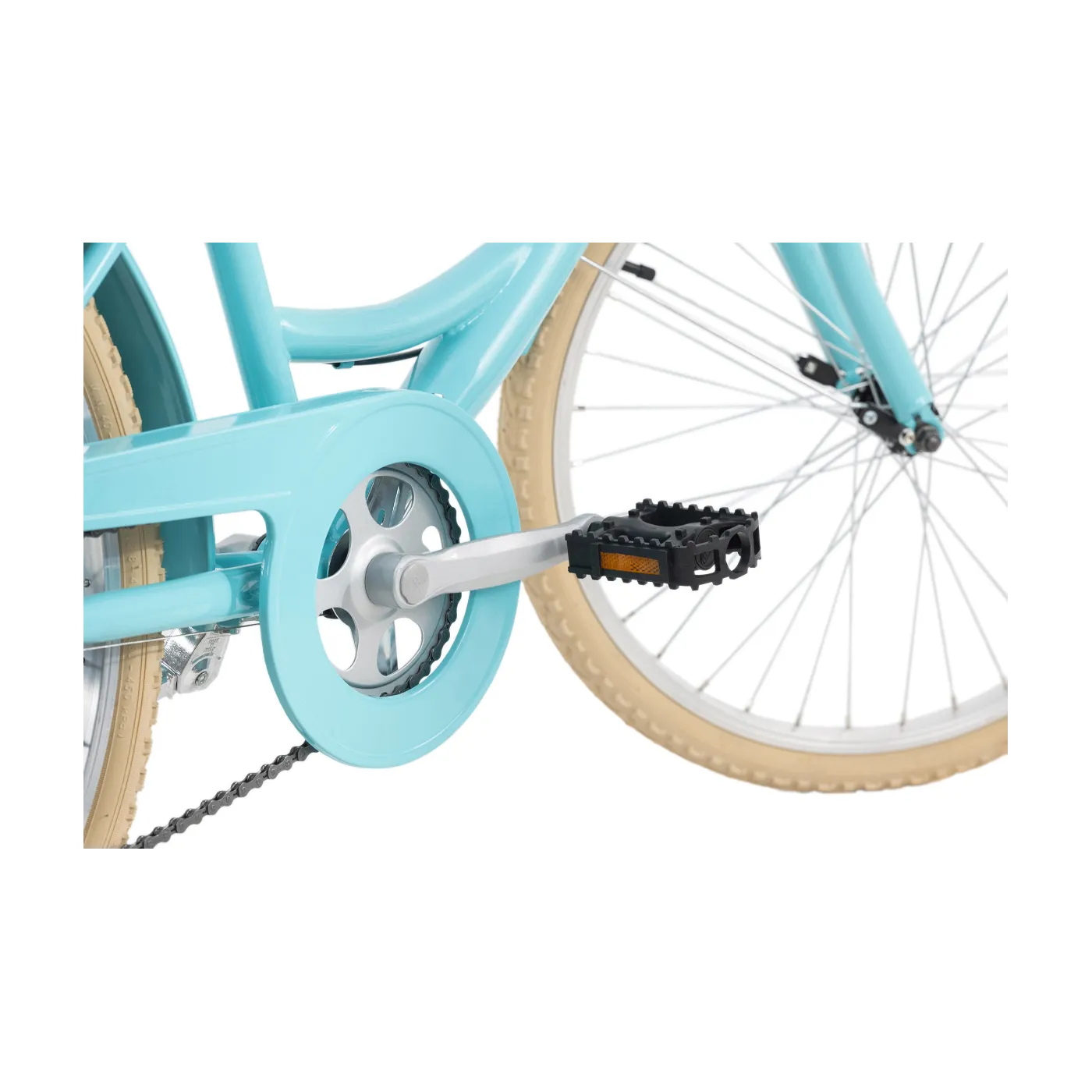 Balloon to idealny towarzysz na każdy dzień dla każdej dziewczynki! Świetnie sprawdzi się do szkoły lub na wycieczki, między innymi dzięki bagażnikowi, na którym można przewieźć plecak, torbę lub inne przydatne rzeczy. Ten rower zachwyca nie tylko uroczym błękitem oraz jasnymi dodatkami, ale także wyposażeniem: posiada 6 biegów oraz wygodną manetkę, a także solidną, stalową ramę i osłonę na łańcuch.